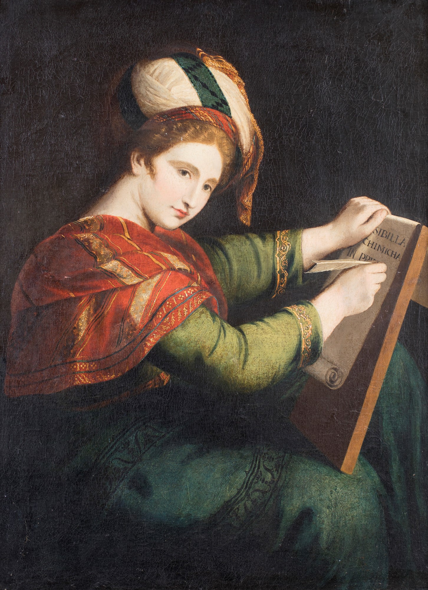 Pittore del XVII secolo Sibilla Chimica olio su tela cm 100x73 (in cornice...