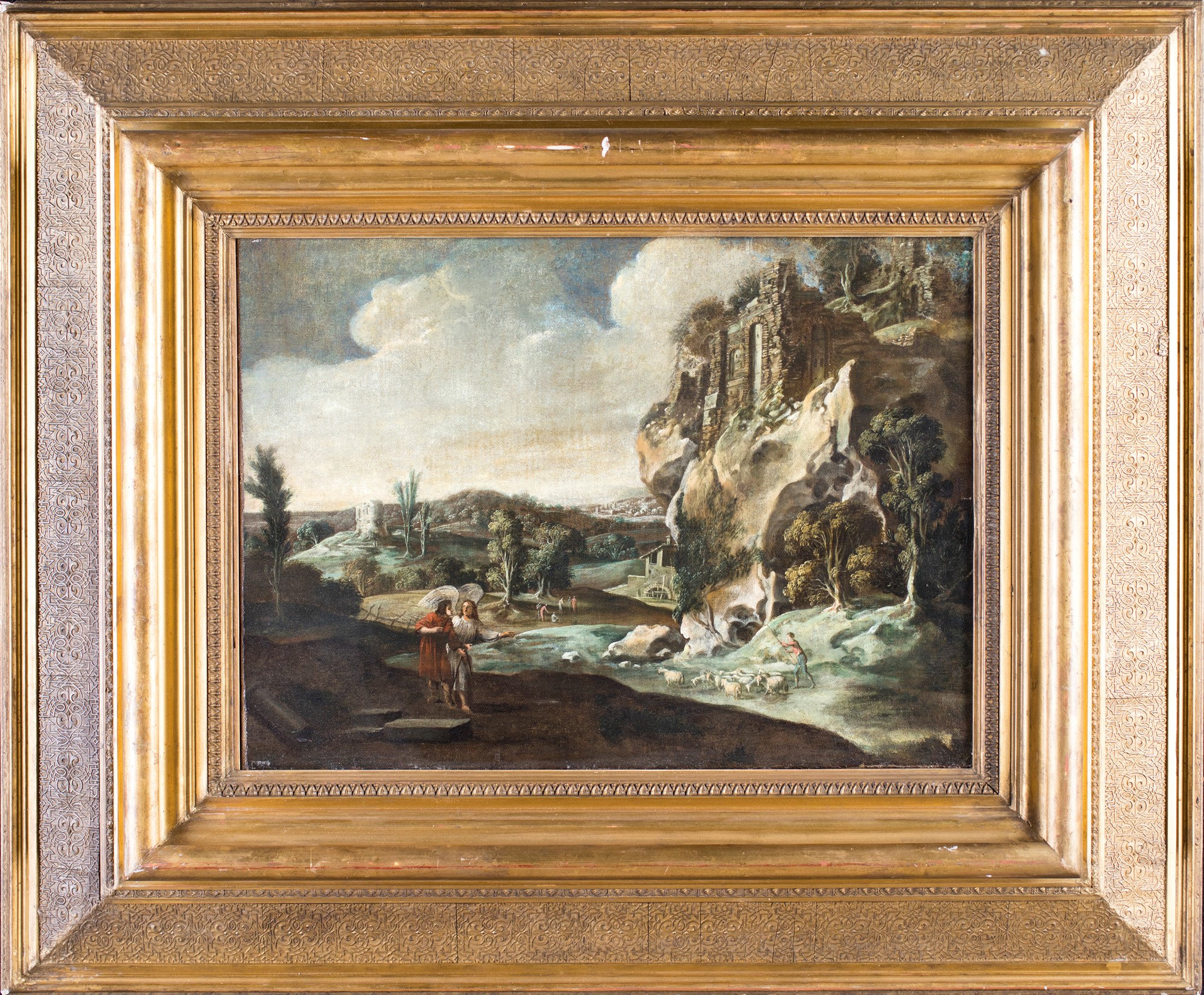 Pittore del XVIII secolo Tobiolo e l'Angelo olio su tela cm 43x57 (in cornice...