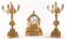 Trittico da camino in bronzo dorato, Francia, XIX secolo composto da un orologio ed una coppia di candelabri a sette luci cm 50x34x20 e altezza cm 65