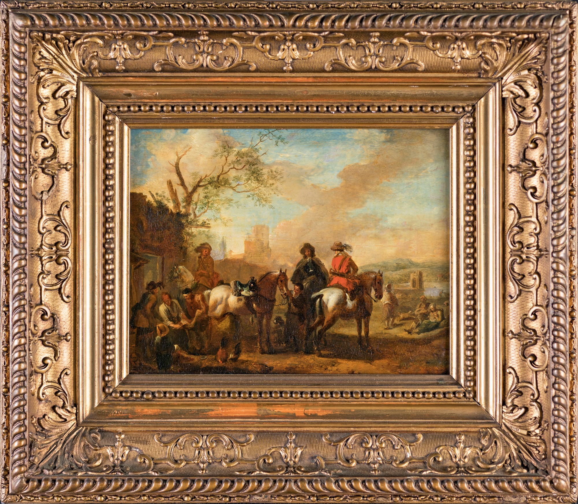 Philips Wouwermann Sosta di cavalieri olio su tavola cm 22x27 (con la...