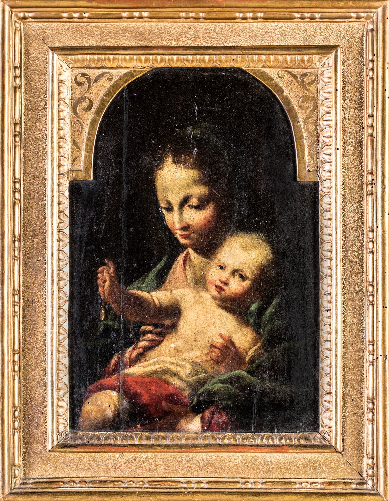 Scuola Italiana del XVII secolo Madonna del Rosario col Bambino olio su...