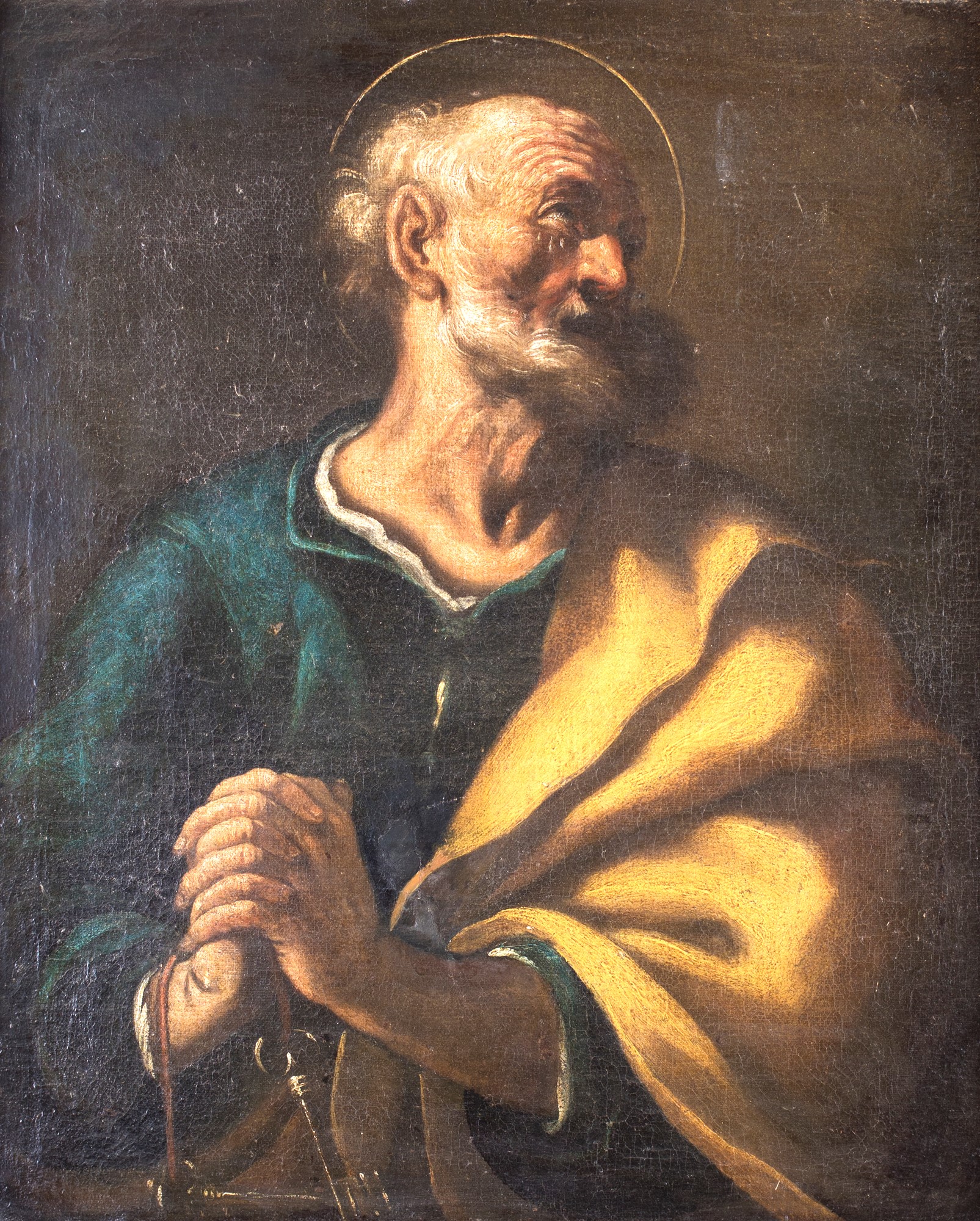 Pittore napoletano del XVII secolo San Pietro olio su tela cm 82x67 (con la...