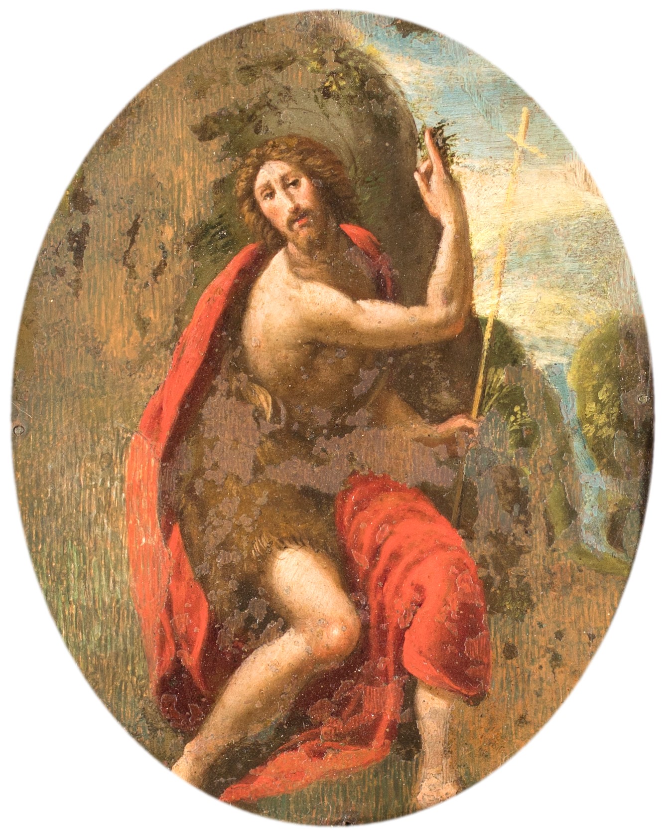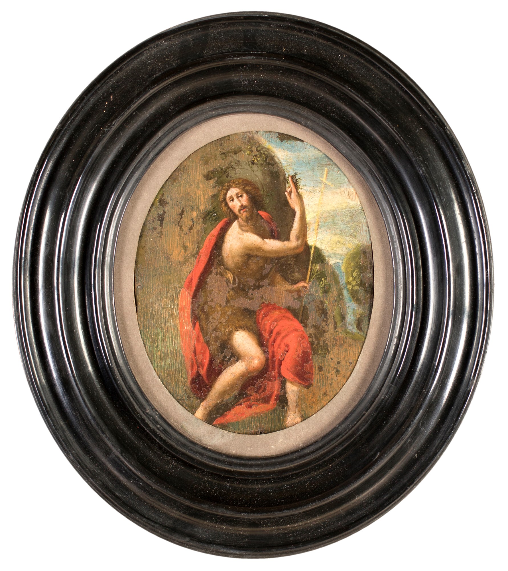 Scuola Italiana del XVII secolo San Giovanni Battista olio su rame applicato...
