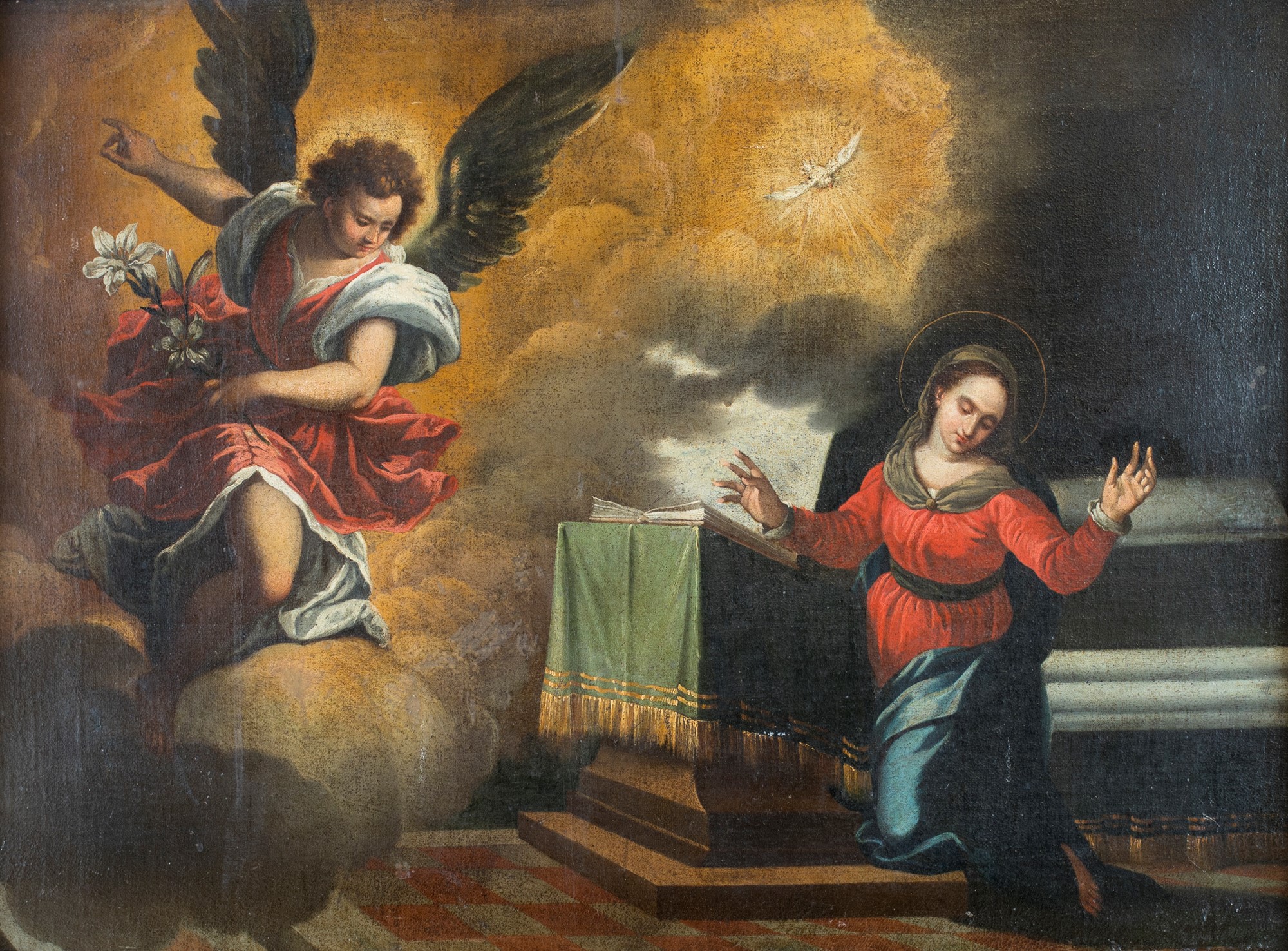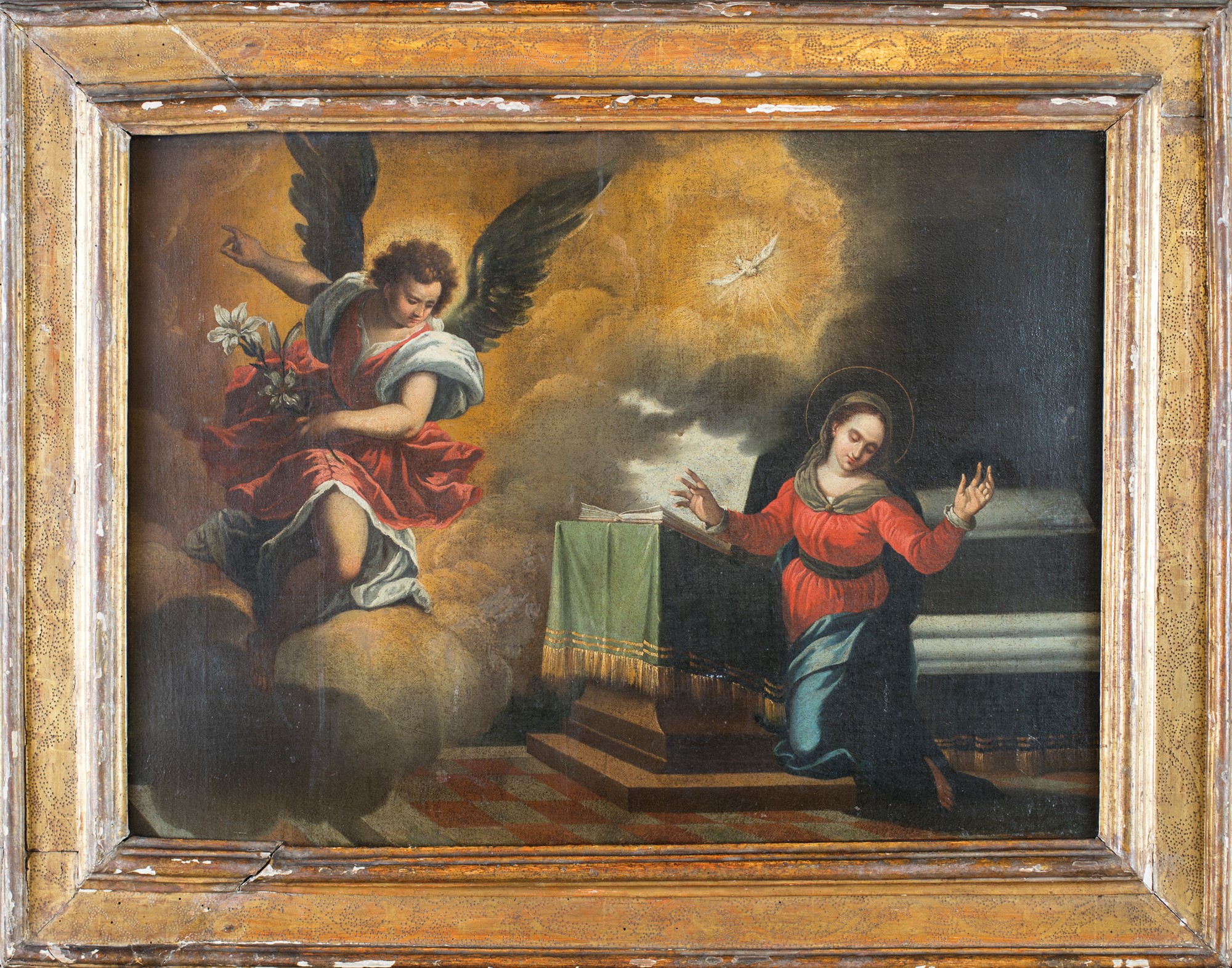 Annunciazione olio su tela cm 66x90 - con la cornice: cm 90x113