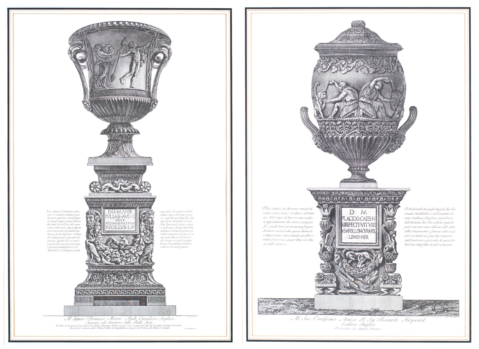 Coppia di stampe raffiguranti vasi classici, edizione Ponte Vecchio da incisioni di Giovan Battista Piranesi cm 93x70 con la cornice