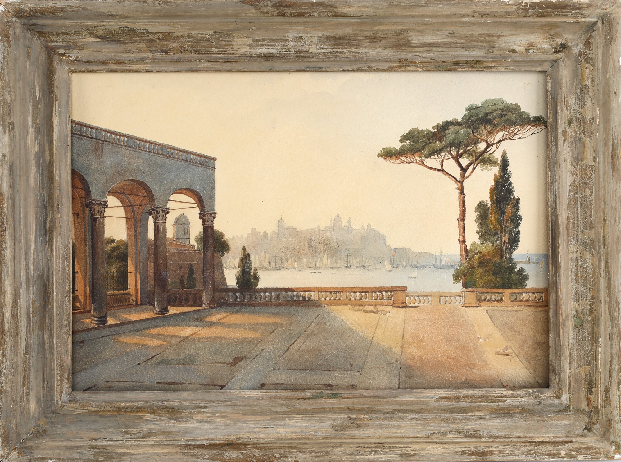 Pittore del XIX secolo Veduta di Genova da Palazzo Doria acquerelli su carta...