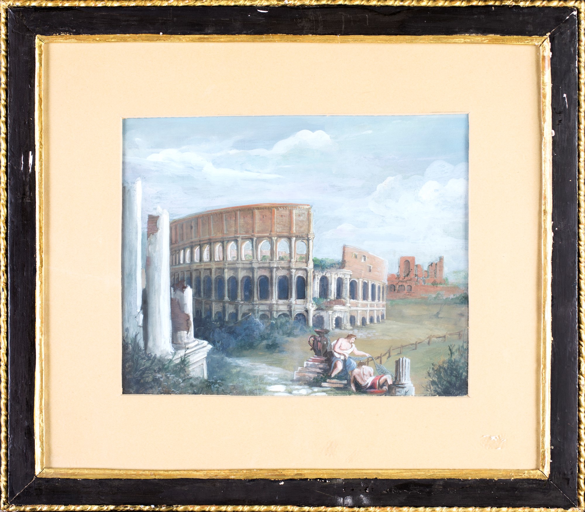 Pittore del XIX secolo Veduta fantastica del Colosseo con figure mitologiche...