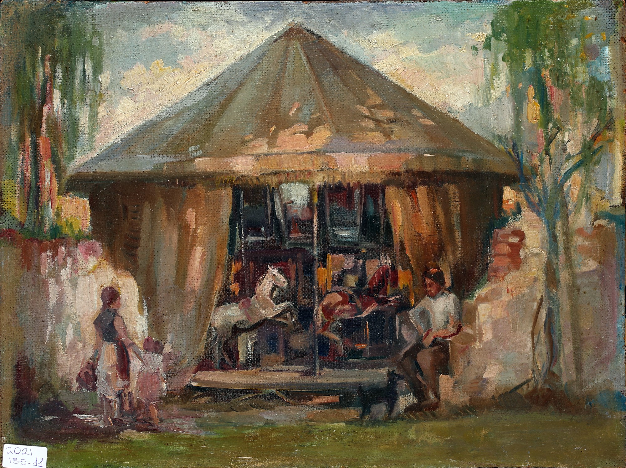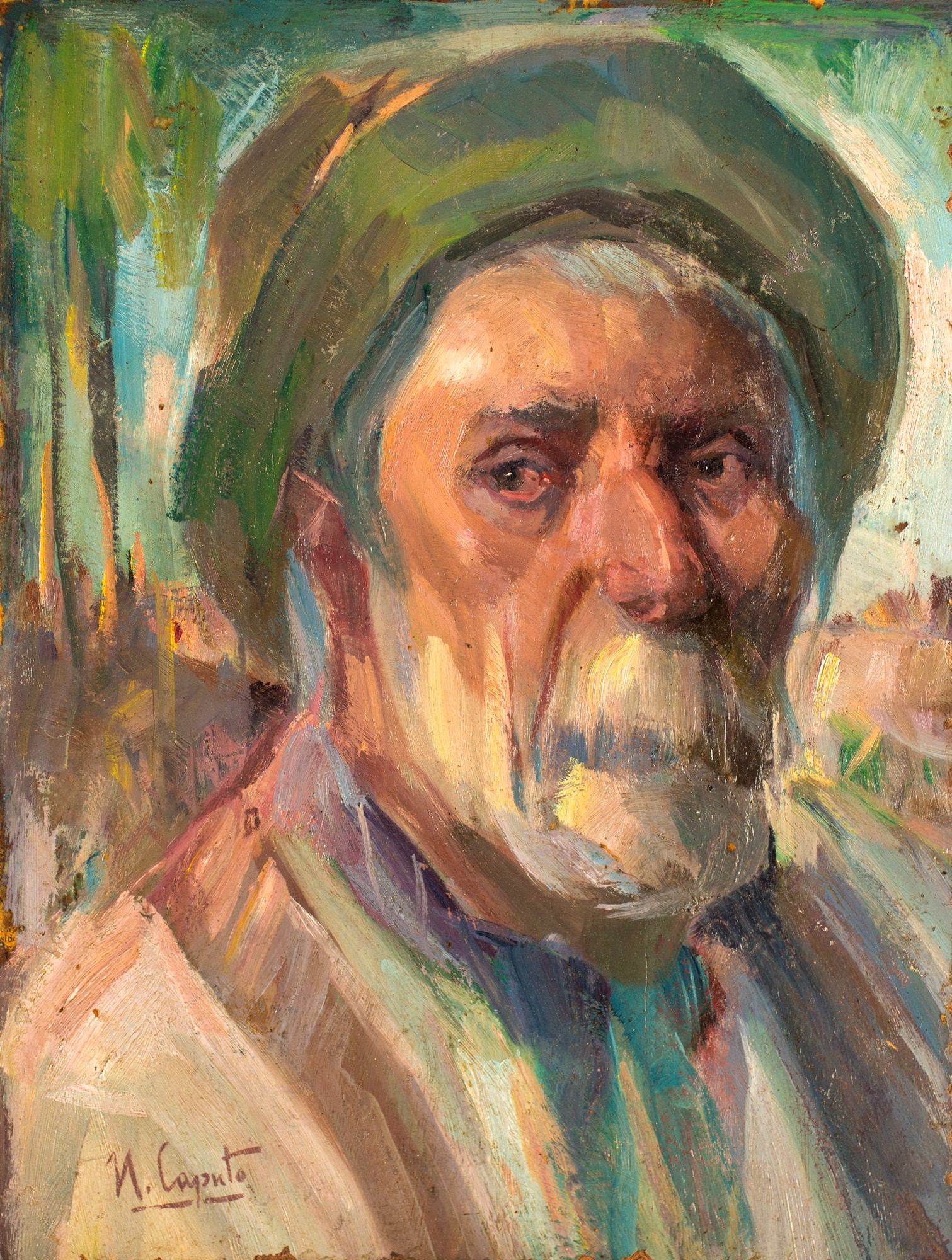 Ulisse Caputo recto: Volto di vecchio verso: Giostra olio su tavola cm 40x30...