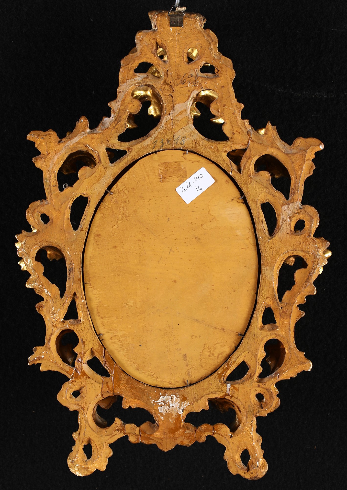 Specchierina in legno dorato, Toscana, XIX secolo con cornice ovale racchiusa...