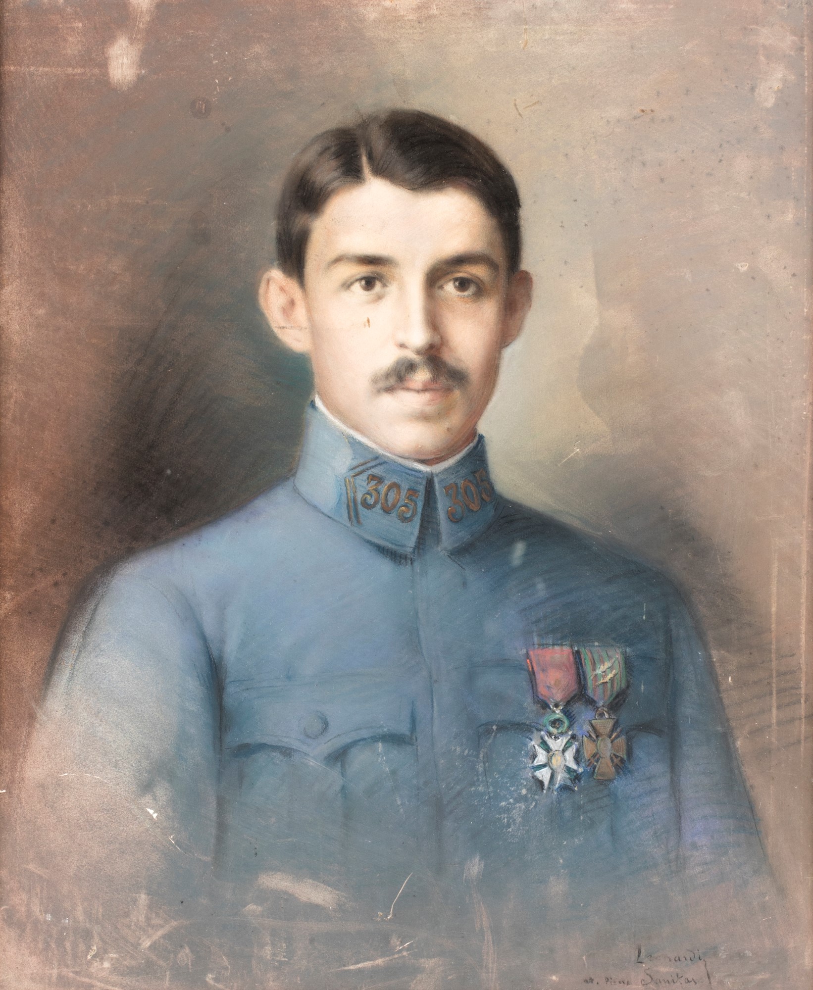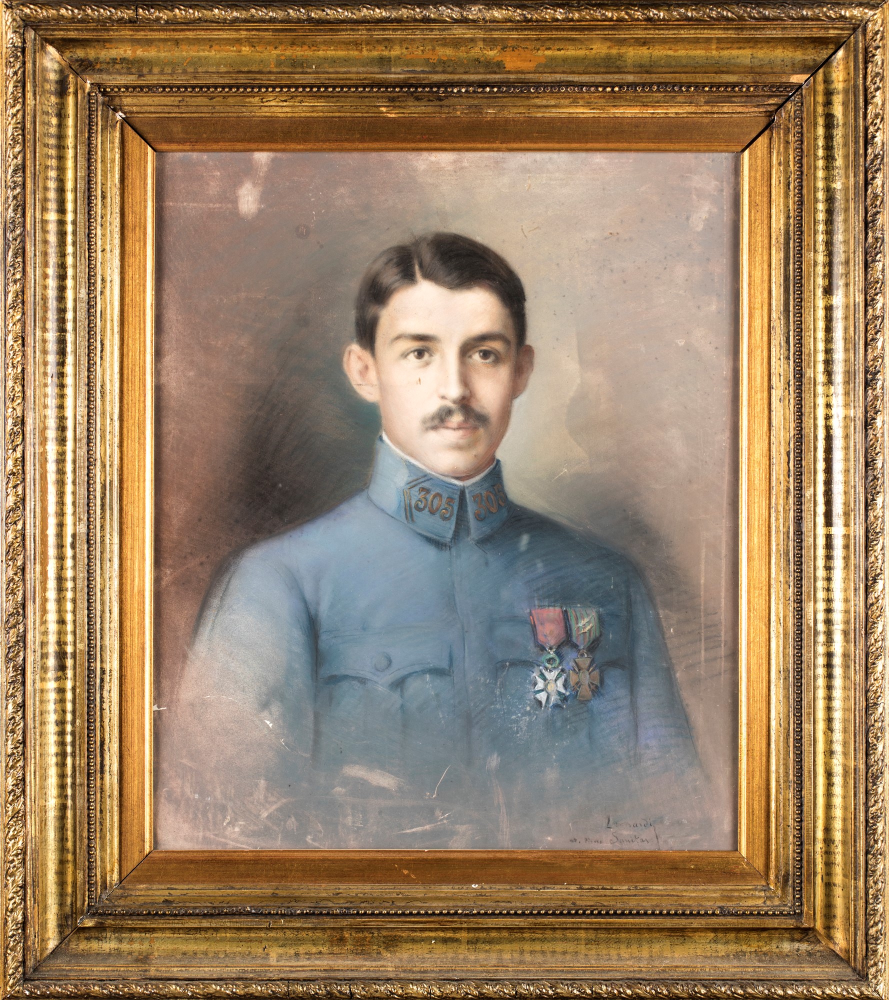 Pittore fine del XIX secolo Ritratto di giovane ufficiale pastelli su carta...