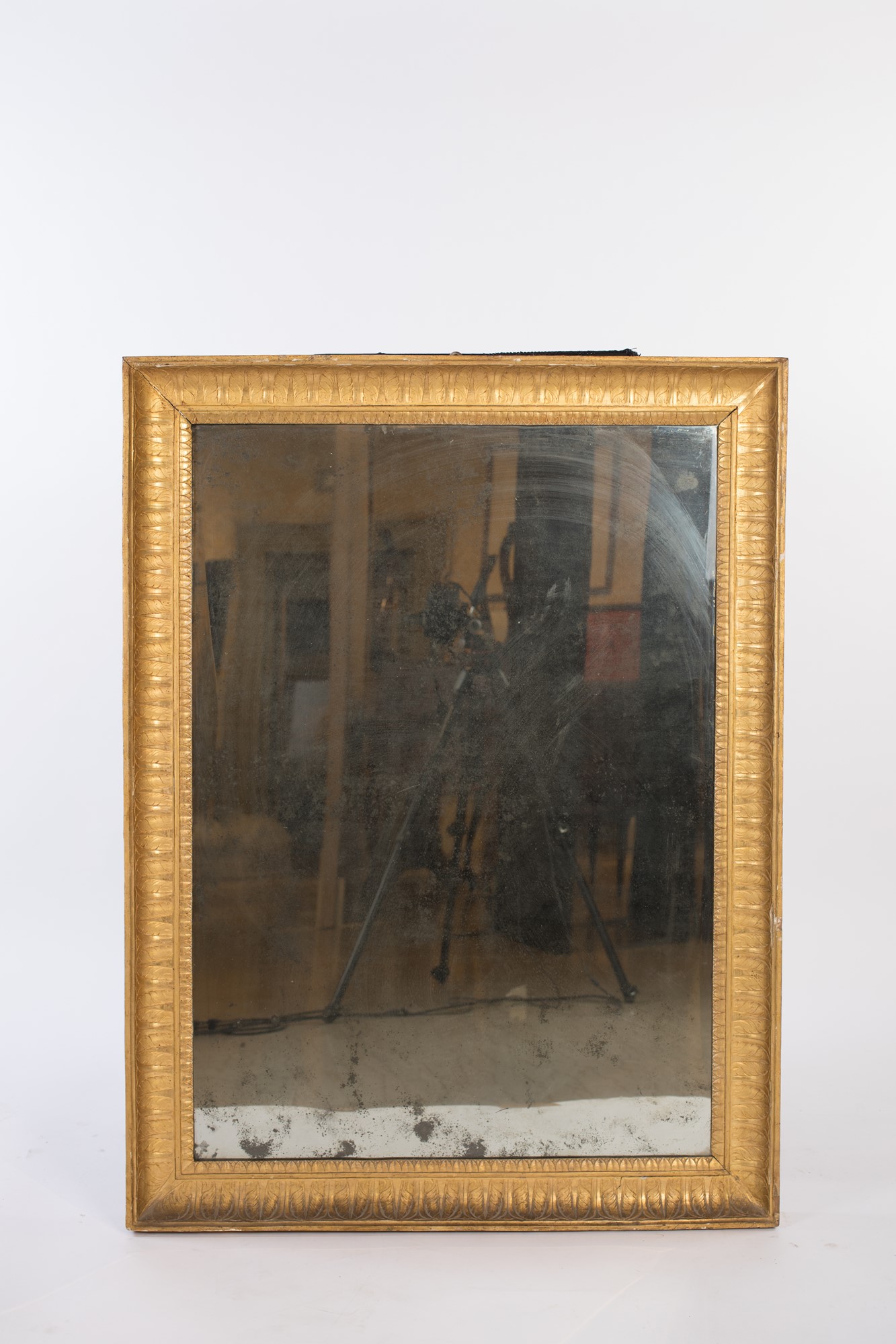 Specchiera in legno dorato, Francia, periodo dell'Impero con cornice a fascia concava interamente percorsa da palmette in sequenza cm 120x90