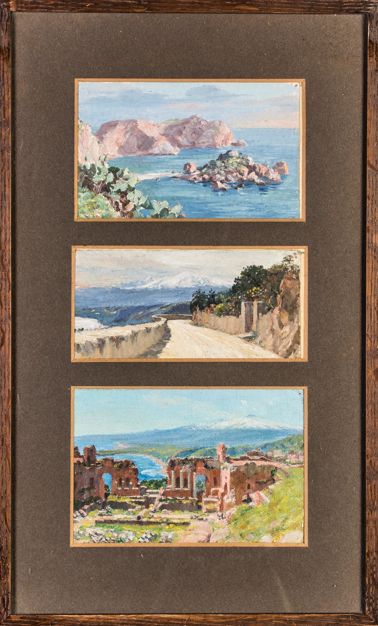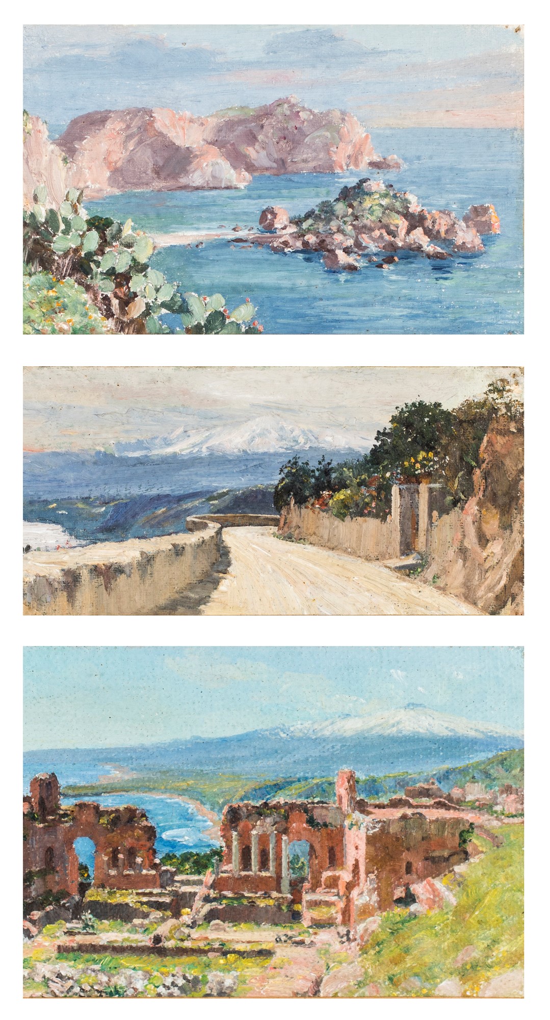 Pittore del XIX/XX secolo Paesaggi siciliani olio su cartone (2) e su cartone...
