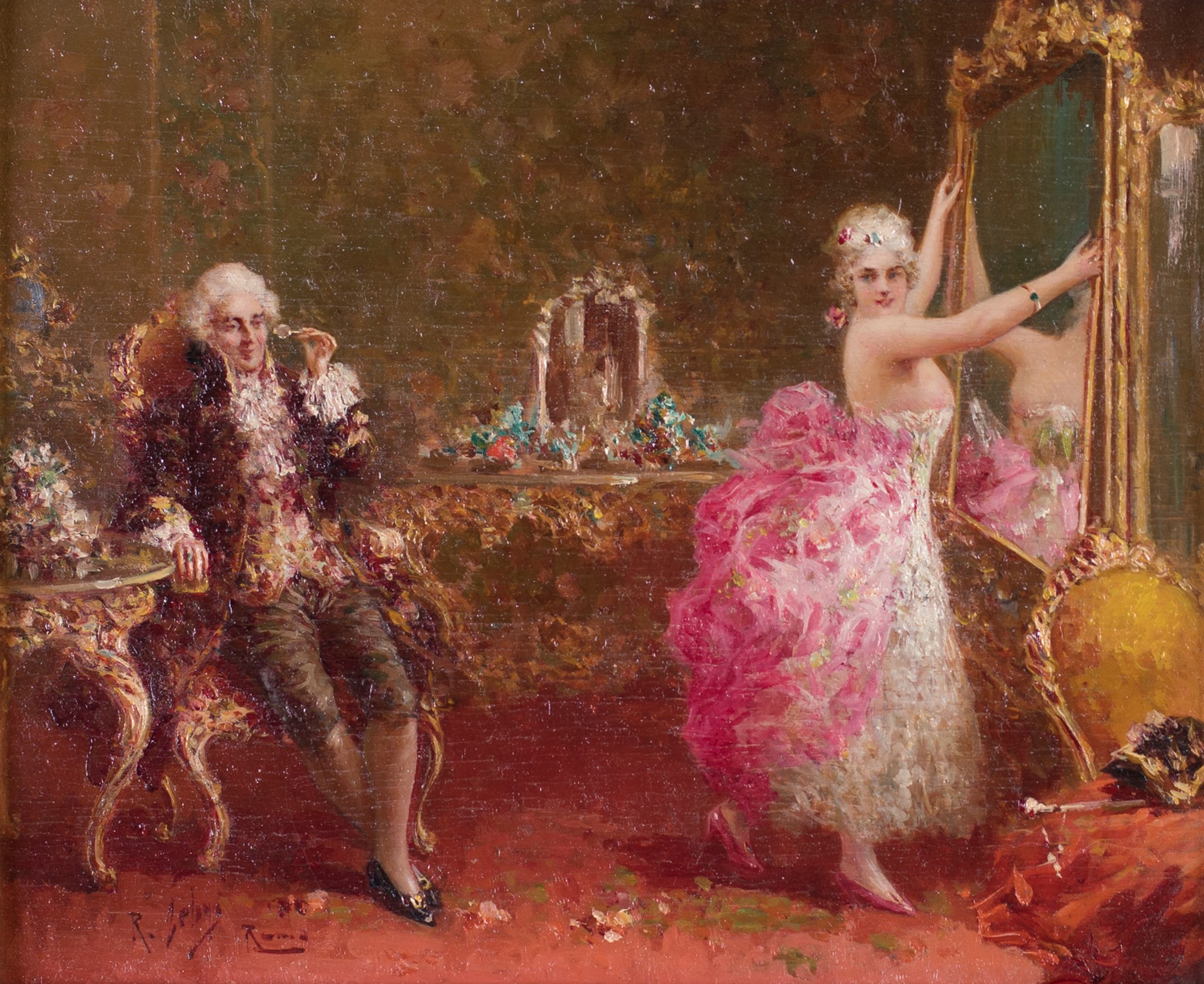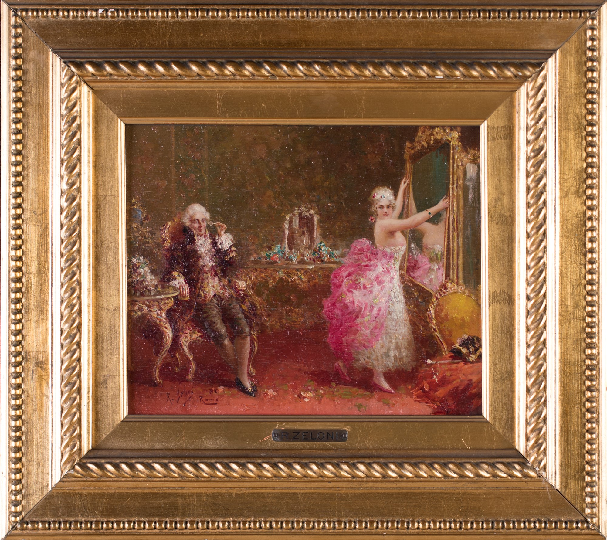 Raffaele Zeloni L'abito nuovo olio su tavola cm 24x30 - con la cornice: cm...
