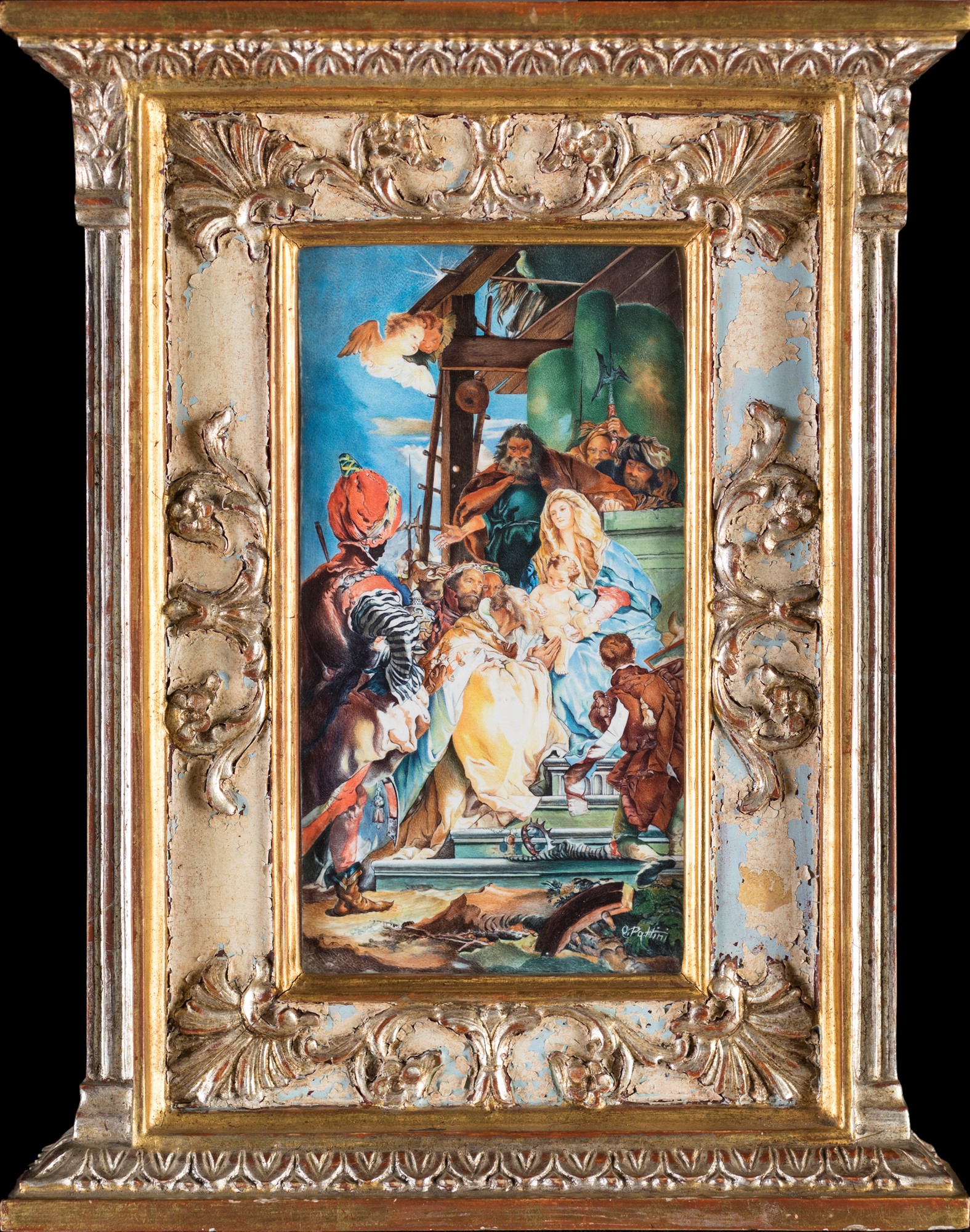 Scuola italiana della fine del XIX secolo Adorazione dei Magi olio su avorio...