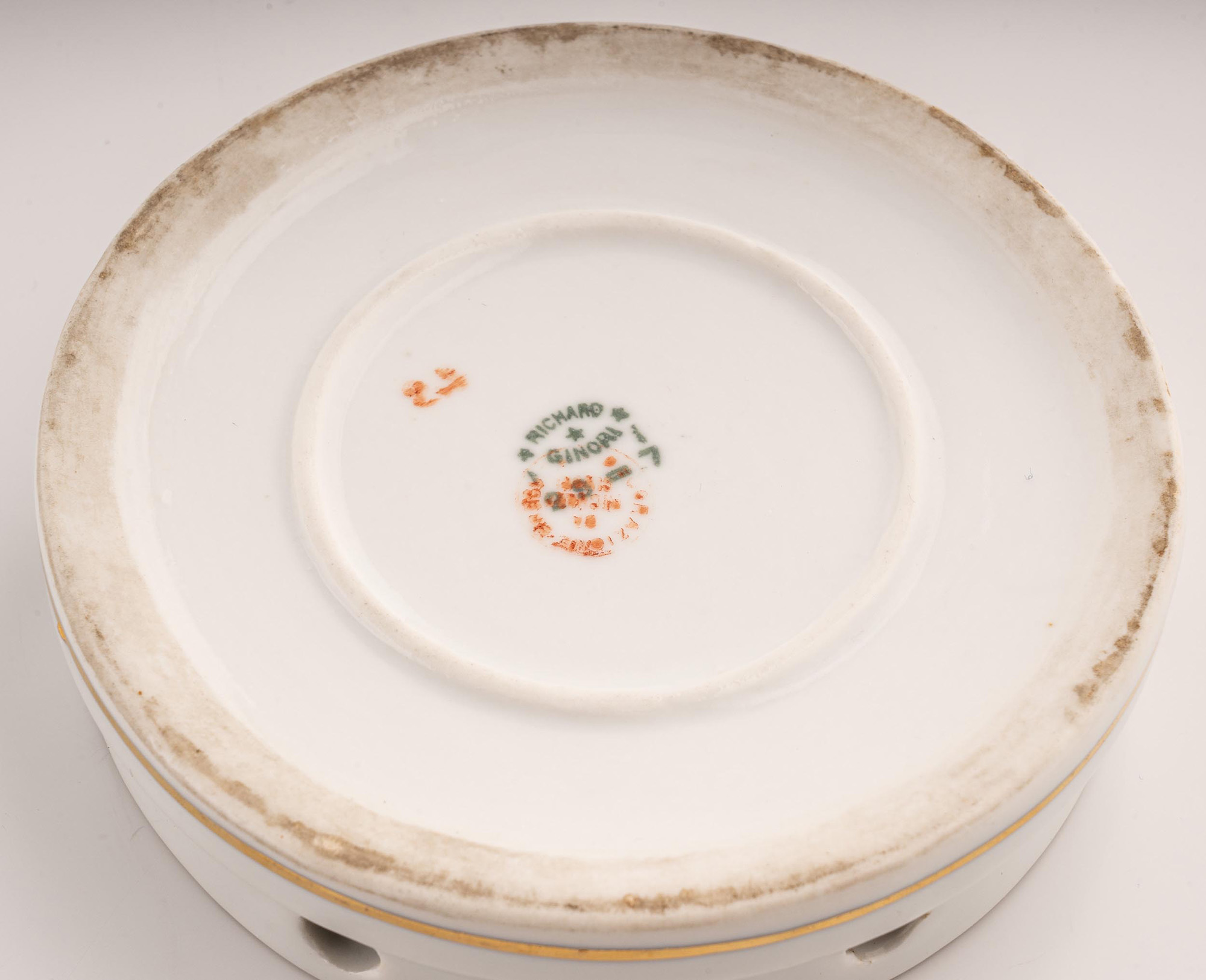 Buonanotte Ginori in porcellana bianca a fiori, caffettiera e zuccheriera, Francia fine XIX secolo, in porcellana bianca-oro e 5 tazzine da caffè Ginori con piatto anni '30