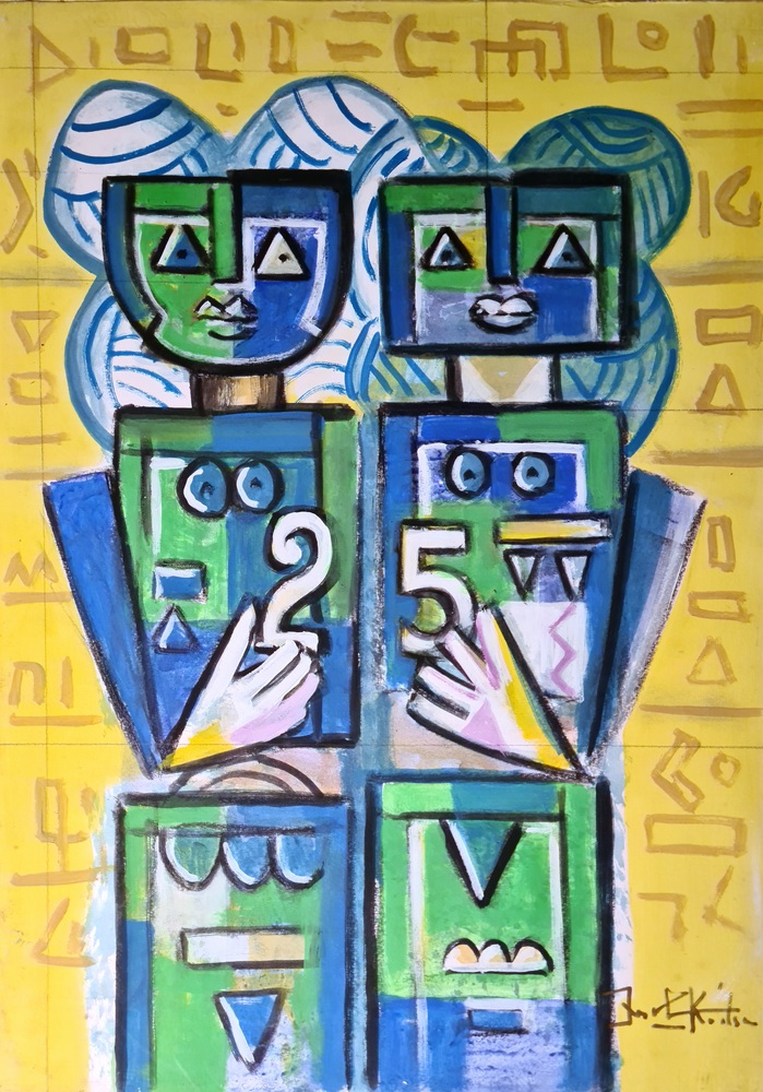 Tecnica mista su carta intelata 50x70 cm; firma in basso a destra.