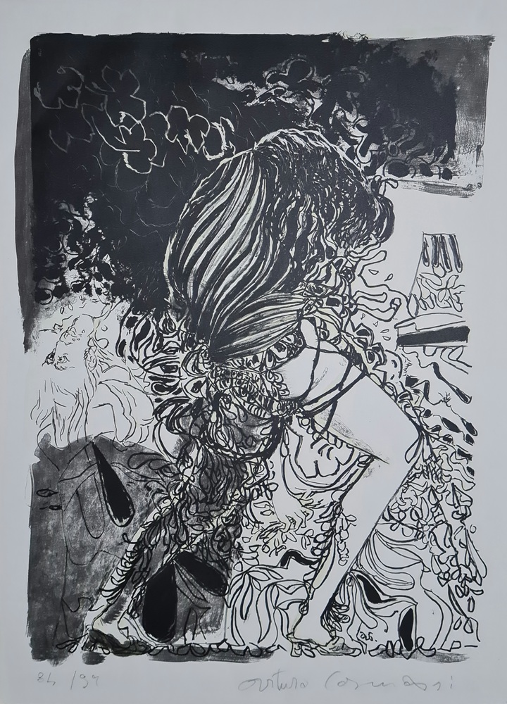 Litografia 77x57 cm; firma in basso a destra, tiratura 84/99 in basso a sinistra.
