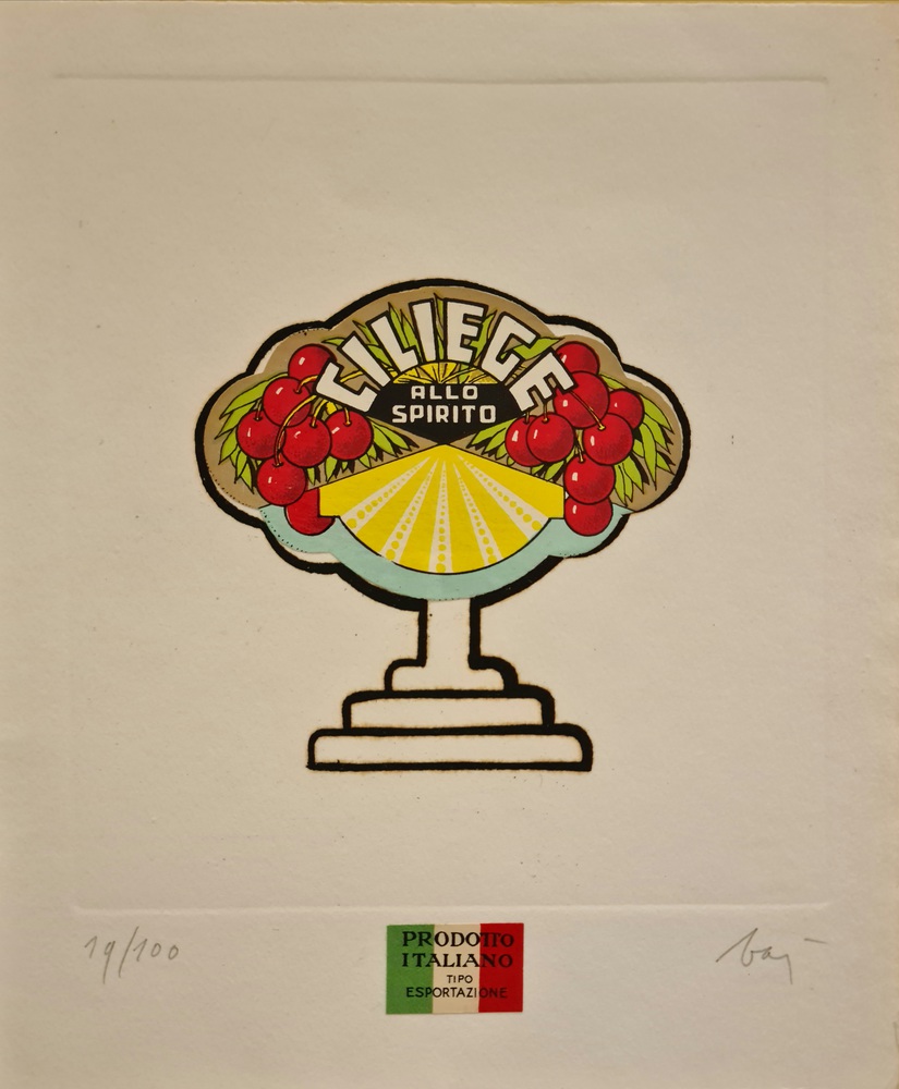 Serigrafia e collages 19x22 cm; firma in basso a destra, tiratura in basso a sinistra.