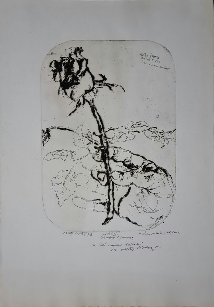Acquaforte 35x50 cm; firma, tiratura e dedica ad personam in basso al centro.