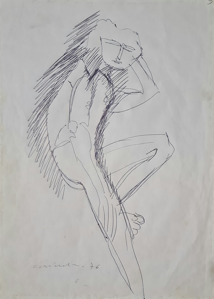 Disegno a biro su carta 35x25 cm firma e anno in basso a sinistra.