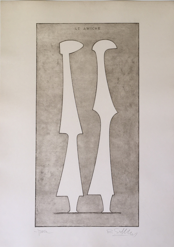 Sabbiatura su zinco su carta 58,1x29,6 cm; firma, anno e tiratura Pda in basso al centro.