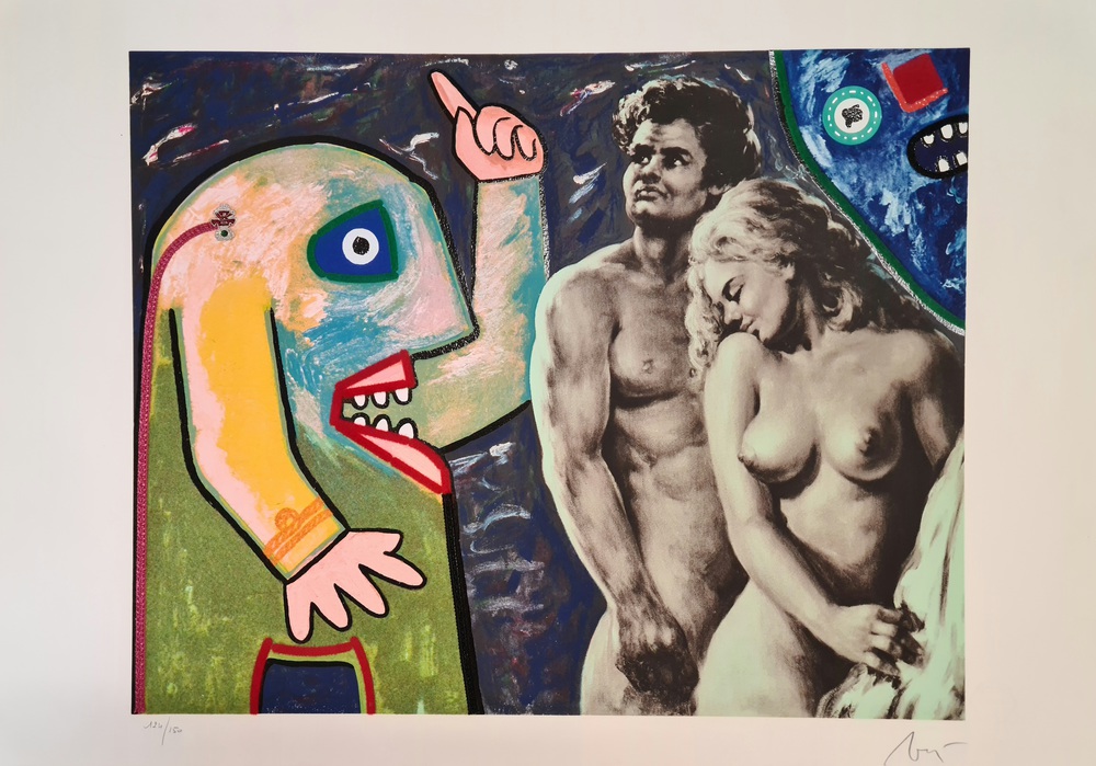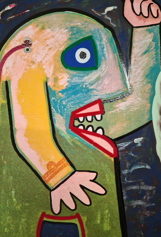 Serigrfia e collages 70x100 cm, firma in basso a destra, tiratura in basso a sinistra