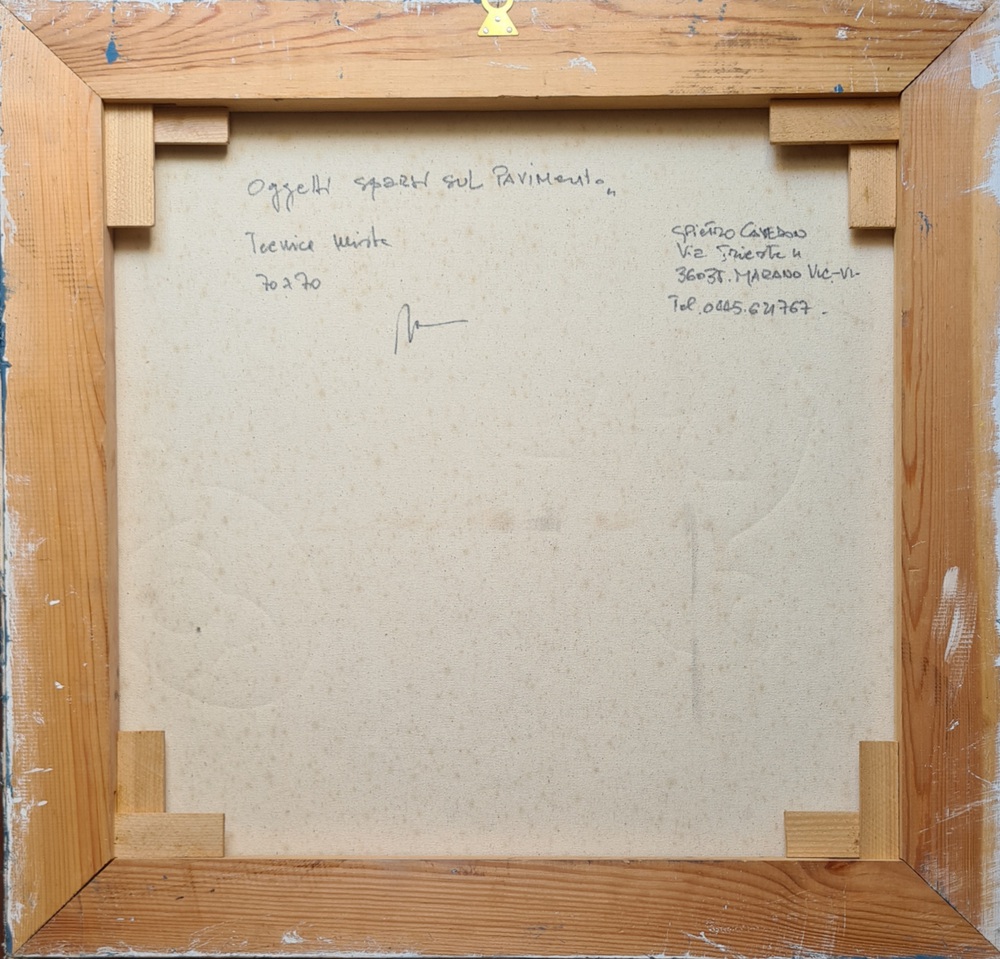 Olio su tela 70x70 cm, firma e titolo in basso al centro, firma e titolo al retro.