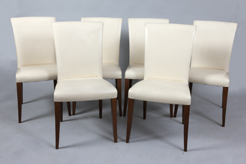 Lot 367 | Gruppo di sei sedie “Vittoria” in legno tinto a noce con seduta e spalliere...