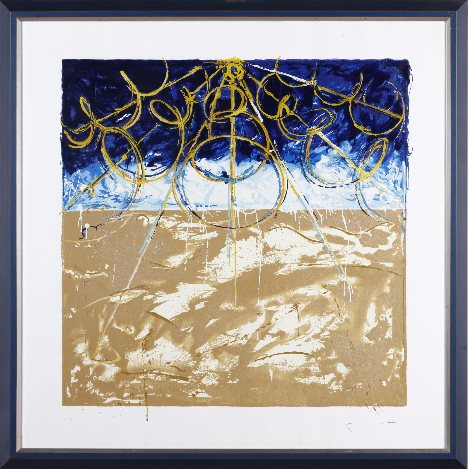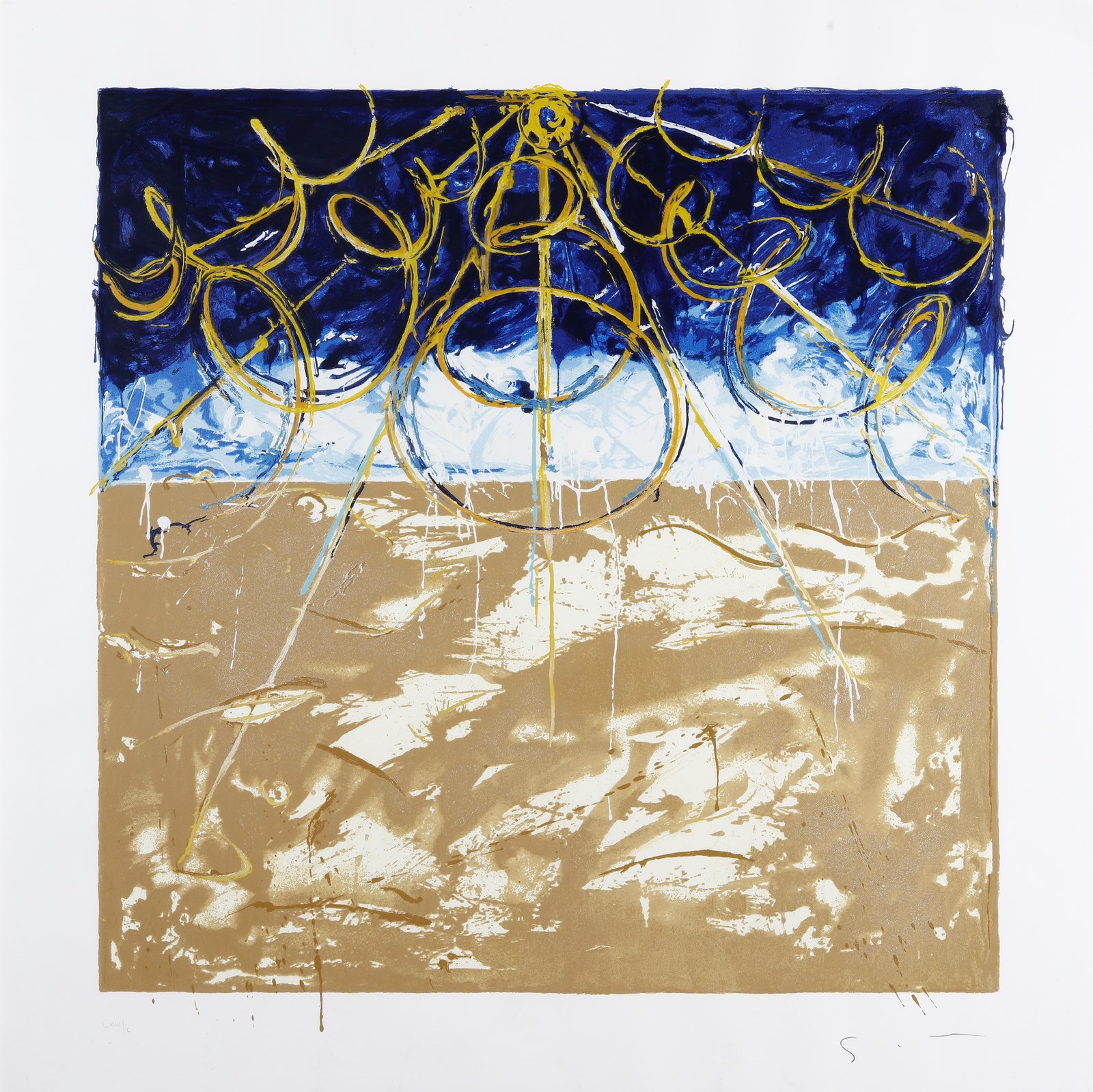 SCHIFANO MARIO (1934 - 1998) Deserto. 1997. Litografia. Cm 100,00 x 100,00. LXIII/C. Tiratura e firma in basso a matita. Certificato di garanzia Telemarket.