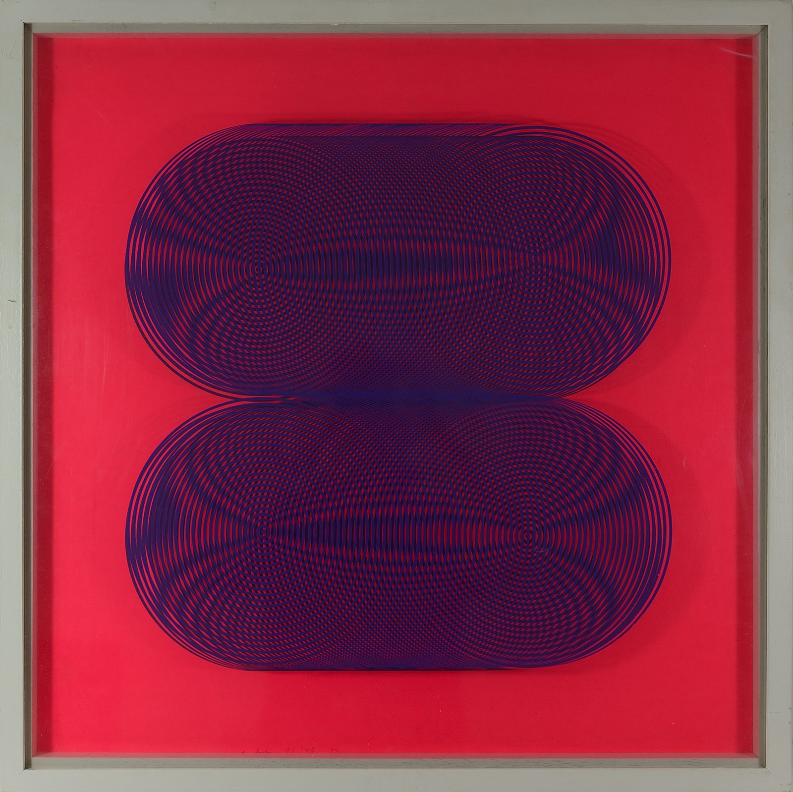 LANDI EDOARDO (n. 1937) Senza titolo. 1972. litografia su superficie lenticolare. Cm 65,00 x 65,00. 11/75. Tiratura, firma e anno in basso al centro. Certificato di autenticità Arte Tivù, Venezia. Cornice presente