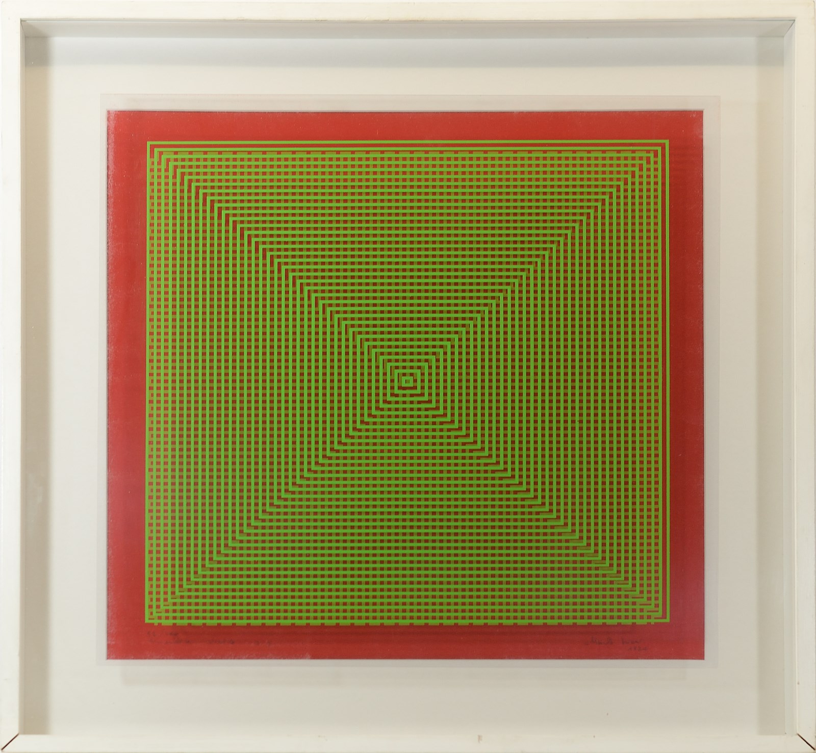 BIASI ALBERTO (n. 1937) - Progetto S1, dinamica visiva in verde su fondo rosso.