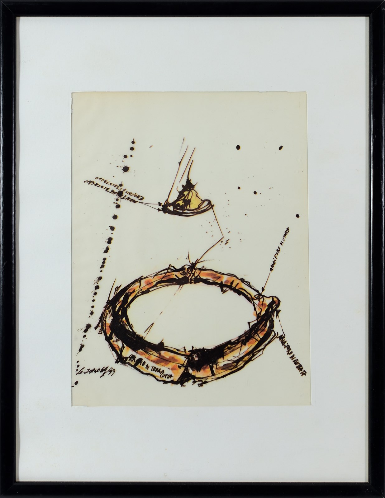 ZORIO GILBERTO (n. 1944) Studio per crogiuolo. 1969. Serigrafia. Cm 20,00 x 26,50. Firma e data in basso a sinistra a stampa. 69/93. Cornice presente