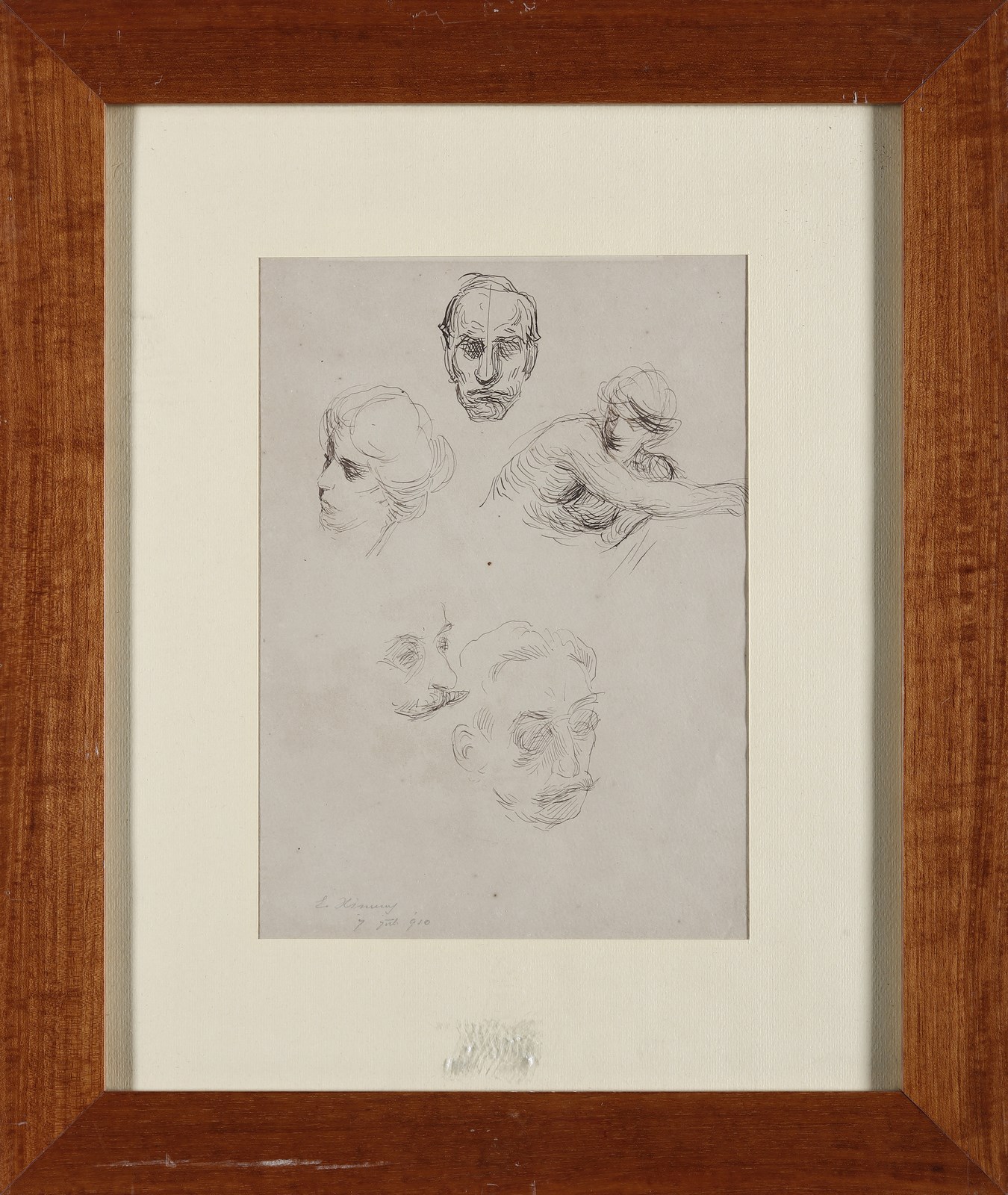 XIMENES ETTORE (1855 - 1926) Quattro ritratti. 1910. Disegno a matita su carta. Cm 19,00 x 27,00. Firma e anno in basso a sinistra. Lievi difetti. Cornice presente