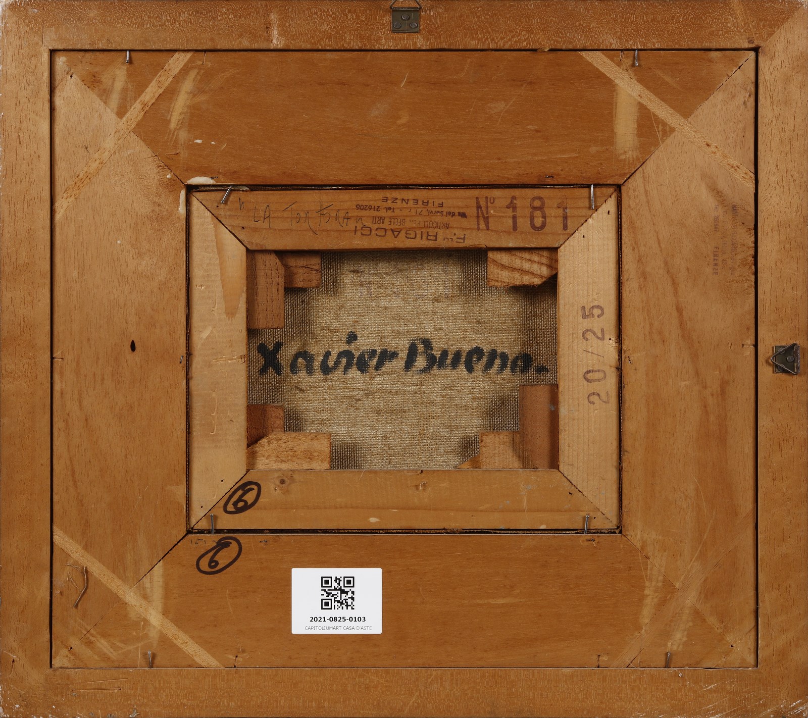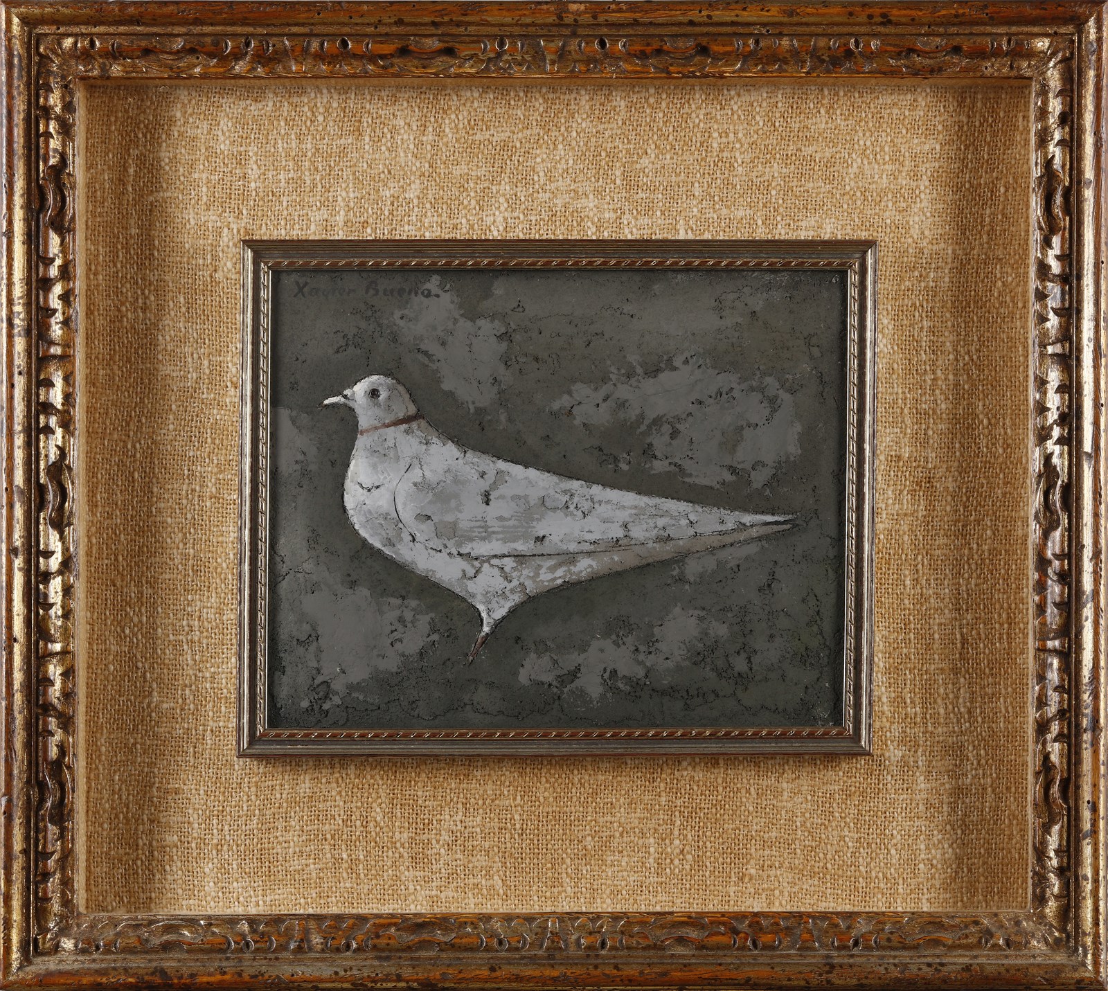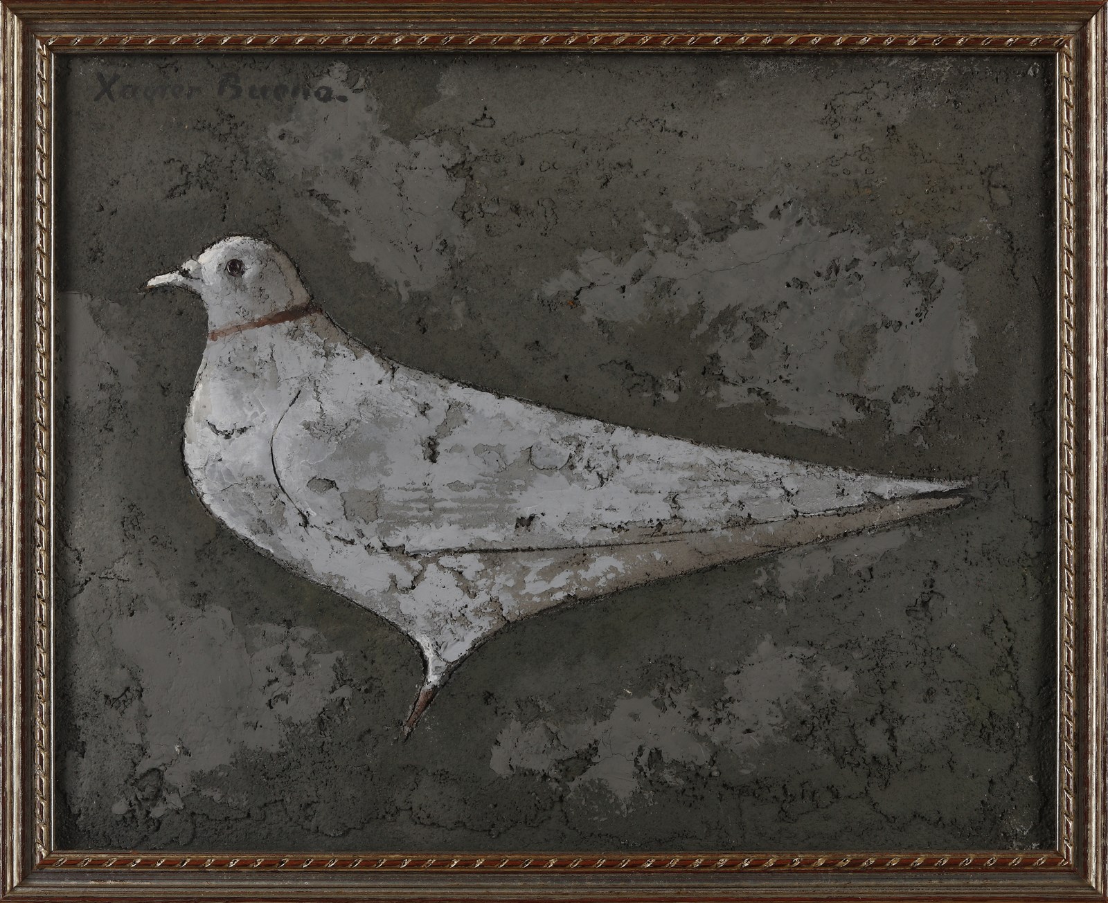 BUENO XAVIER (1915 - 1979) La tortora. Olio su tela . Cm 25,00 x 20,00. Firma in alto a sinistra e al retro. Autentica su fotografia di Raffaele Bueno riportante il relativo numero d'inventario. L'opera sarà inserita nel Catalogo Generale dell'opera di Xavier Bueno, Volume III, Giorgio Mondadori Editore, di prossima pubblicazione.
