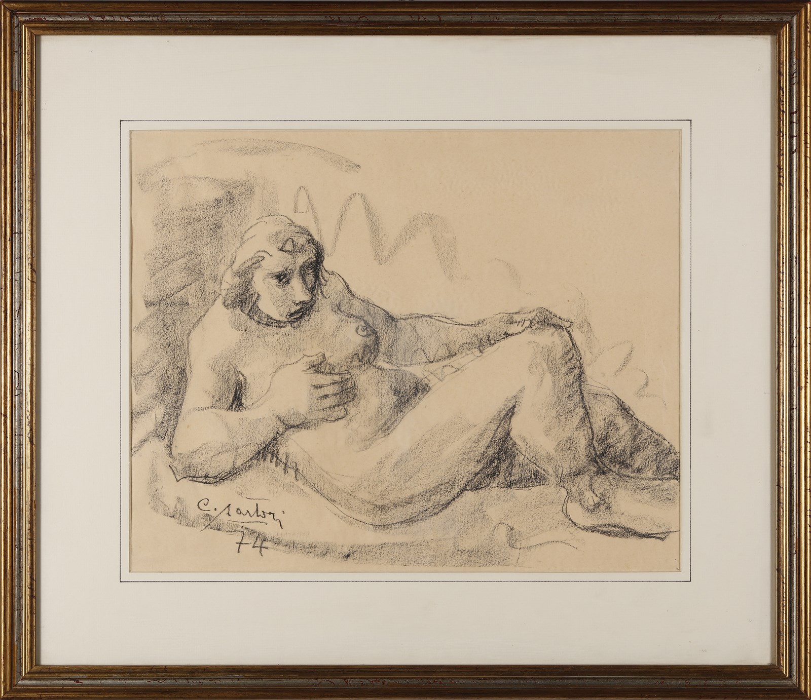 SARTORI CARLO (1921 - 2010) Senza titolo. 1974. Tecnica mista su carta. Cm 50,00 x 40,00. Firma e anno in basso a sinistra. Cornice presente