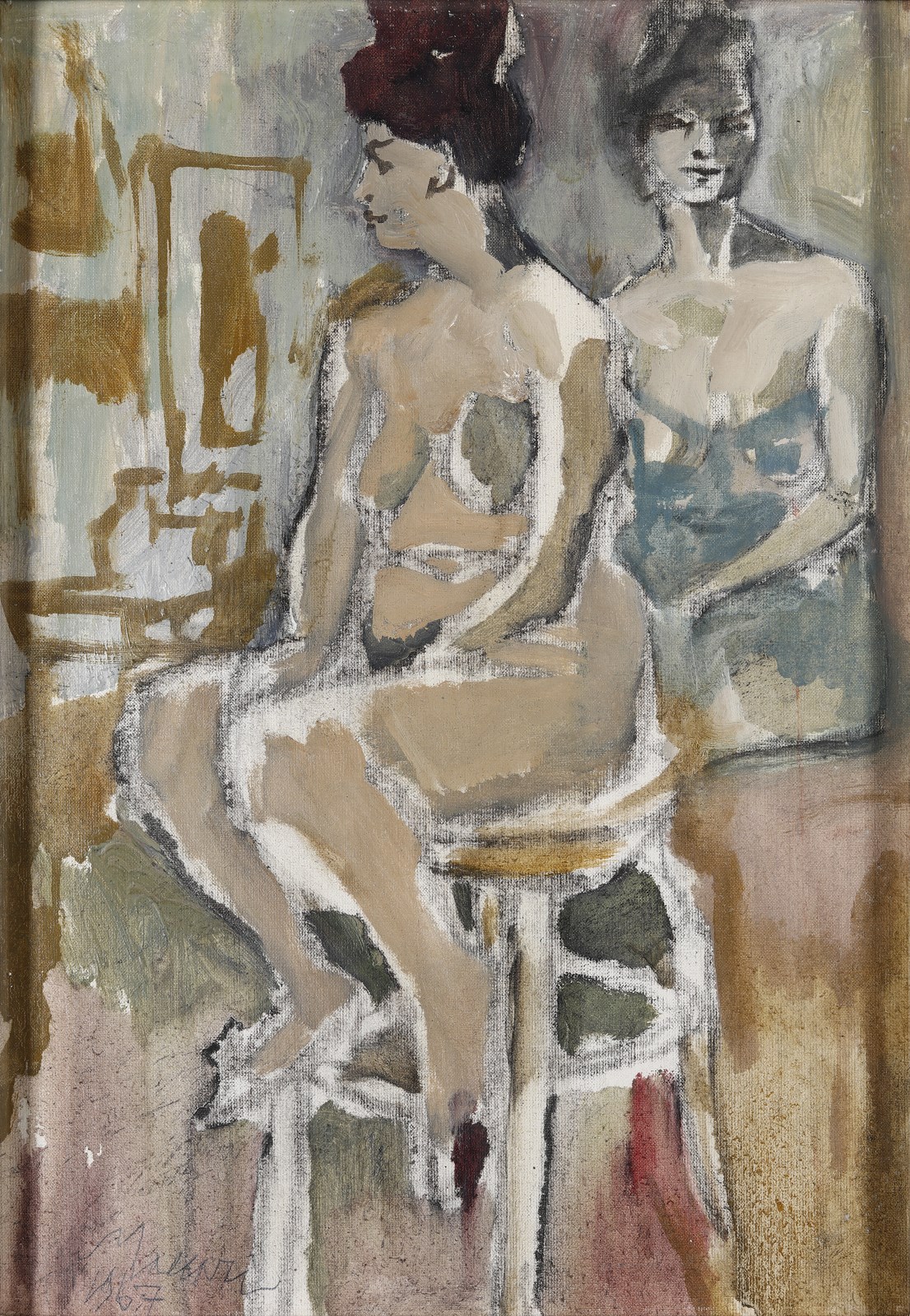 MACCARI MINO (1898 - 1989) Senza titolo. 1967. Olio su cartone telato. Cm 35,00 x 50,00. Firma e anno in basso a sinistra. Opera archiviata presso l'Archivio Mino Maccari, Cinquale, come da documentazione fotografica allegata all'opera riportante il relativo numero d'inventario. Cornice presente