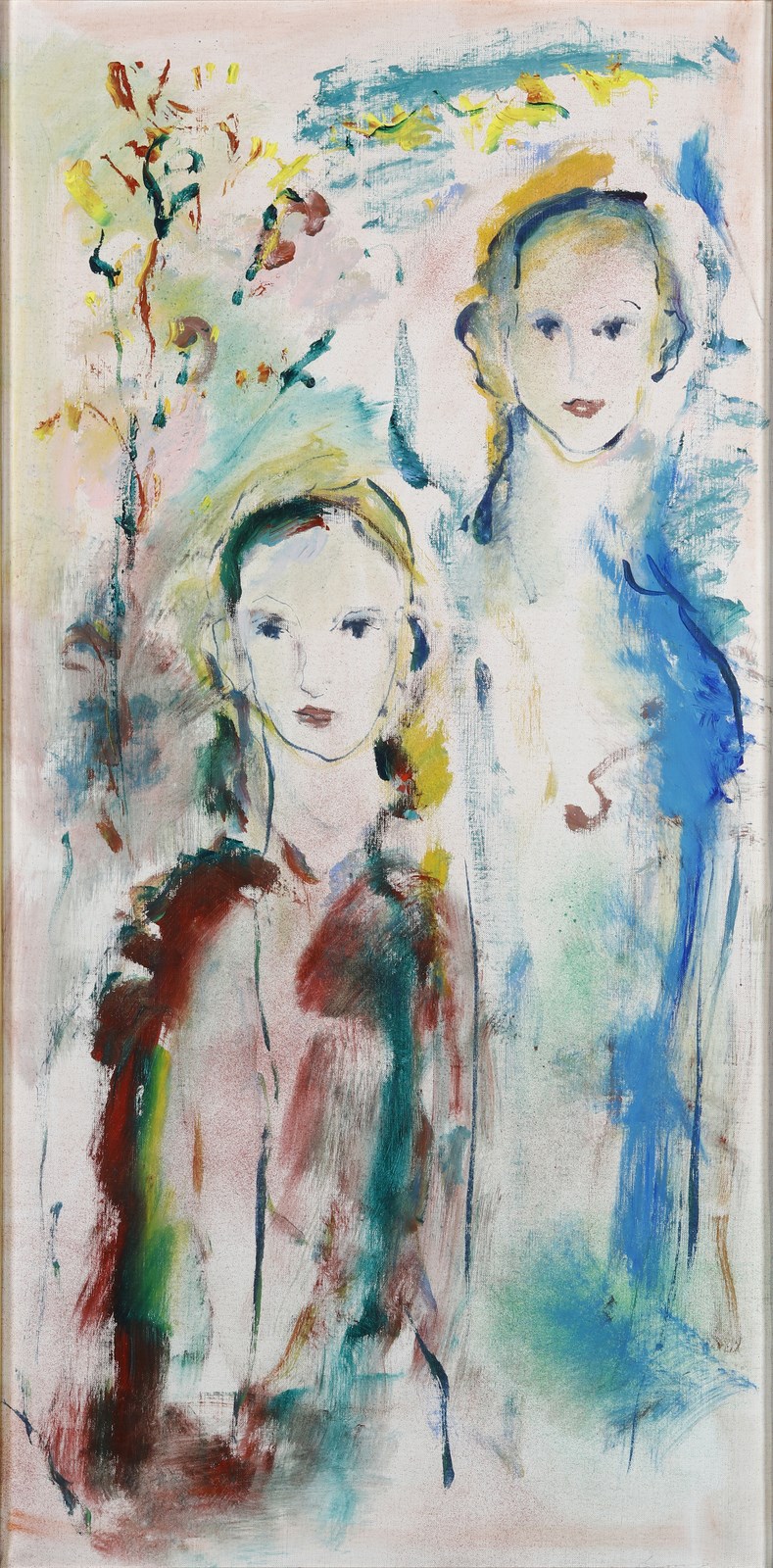 TRECCANI ERNESTO (1920 - 2009) Senza titolo. Acrilici su tela . Cm 45,00 x 90,00. Firma in basso a destra. Autentica dell'artista su fotografia. 1968-1969. Provenienza: Il Castello, Adria. Cornice presente