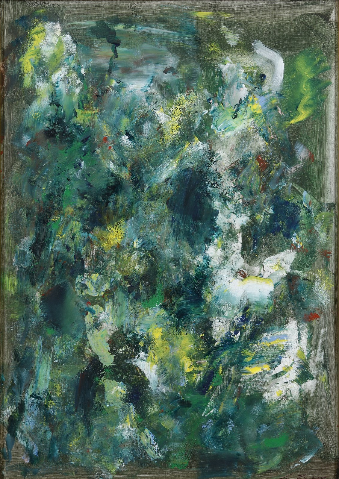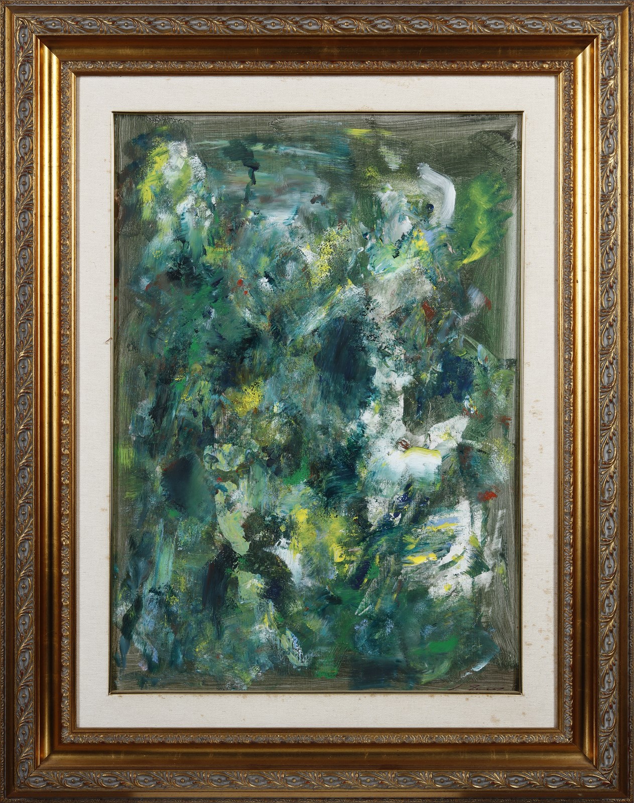 TRECCANI ERNESTO (1920 - 2009) Siepe di montagna. 1993. Olio su tela . Cm 50,00 x 70,00. Firma in basso a destra. Al retro timbro Il Castello, Adria. Cornice presente
