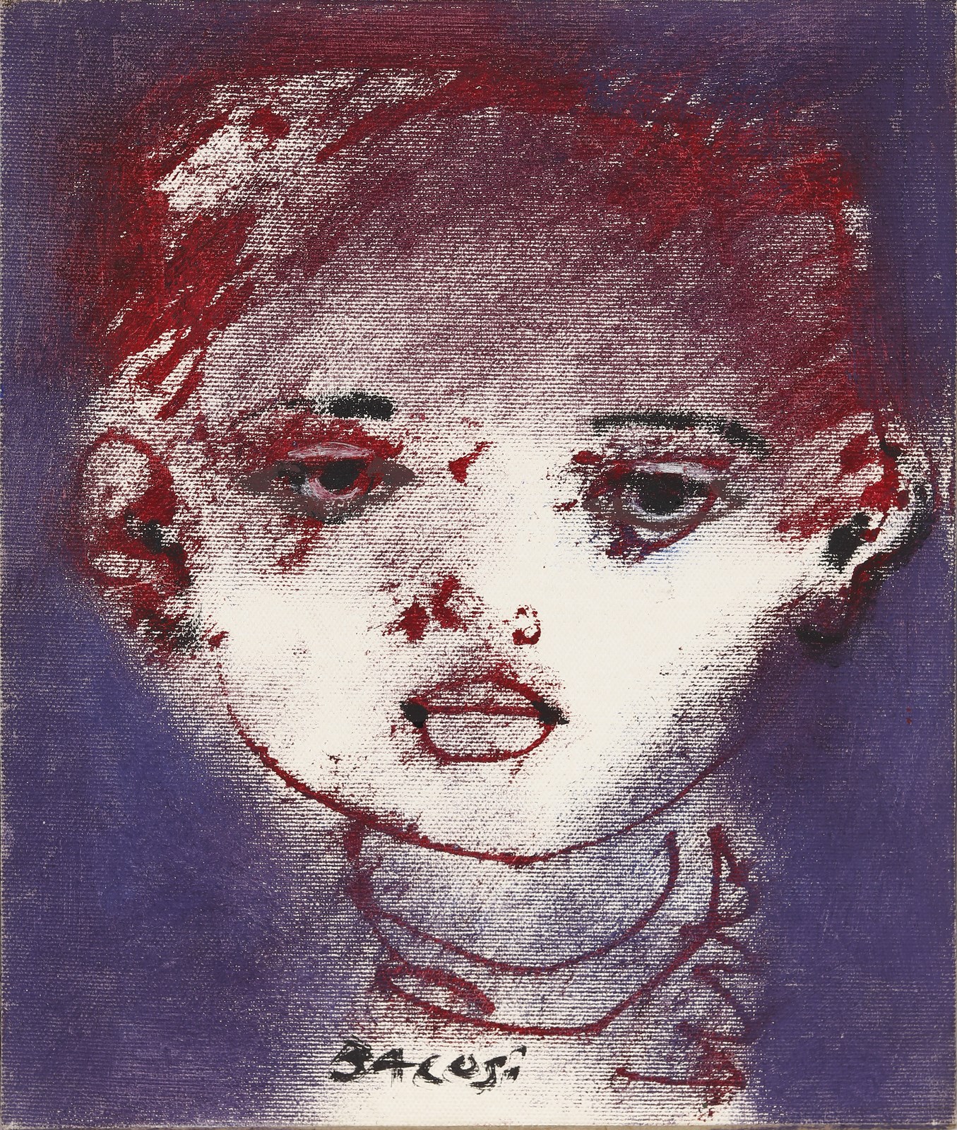 BACOSI MANLIO (1921 - 1998) Bambino. 1982. Olio su tela . Cm 25,00 x 30,00. Firma in basso al centro. Dedica al retro. Autentica dell'artista su fotografia.