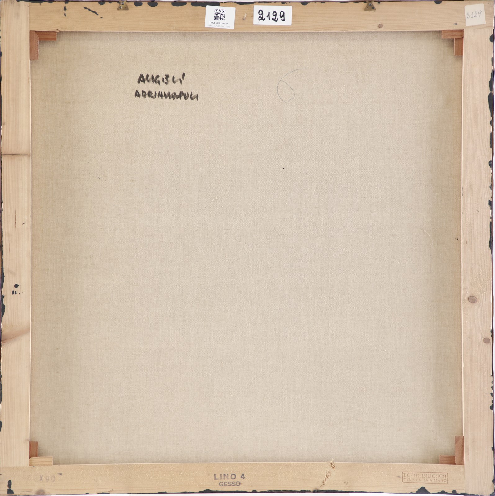 ANGELI FRANCO (1935 - 1988) Adrianopoli. 1988. Tecnica mista su tela. Cm 90,00 x 90,00. Al retro firma e titolo. Opera archiviata presso l'Archivio Franco Angeli, Roma, come da documentazione fotografica allegata all'opera riportante il relativo numero d'inventario. Difetti.