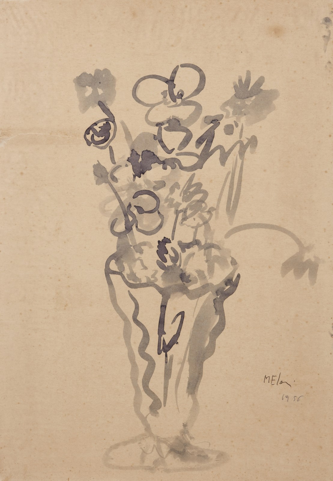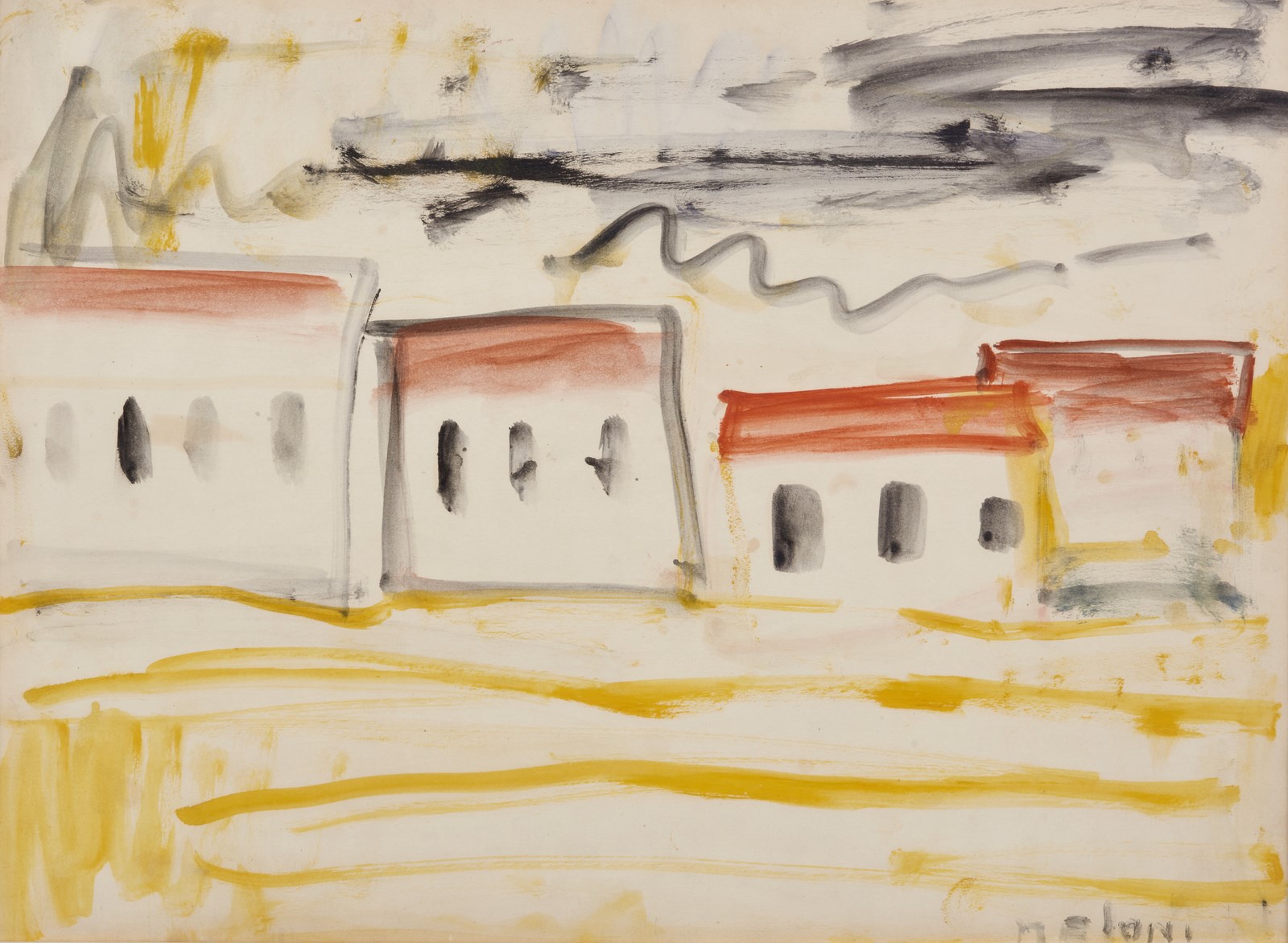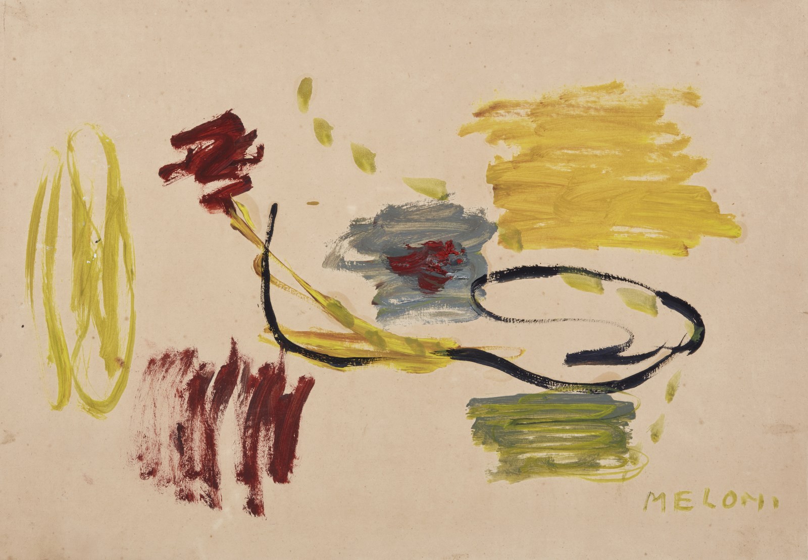 MELONI GINO (1905 - 1989) Lotto composto da n.3 opere. Senza titolo. 1956. Tecnica mista su carta. Cm 48,50 x 34,50. Ogni opera è firmata in basso a destra. Difetti. Cornice presente