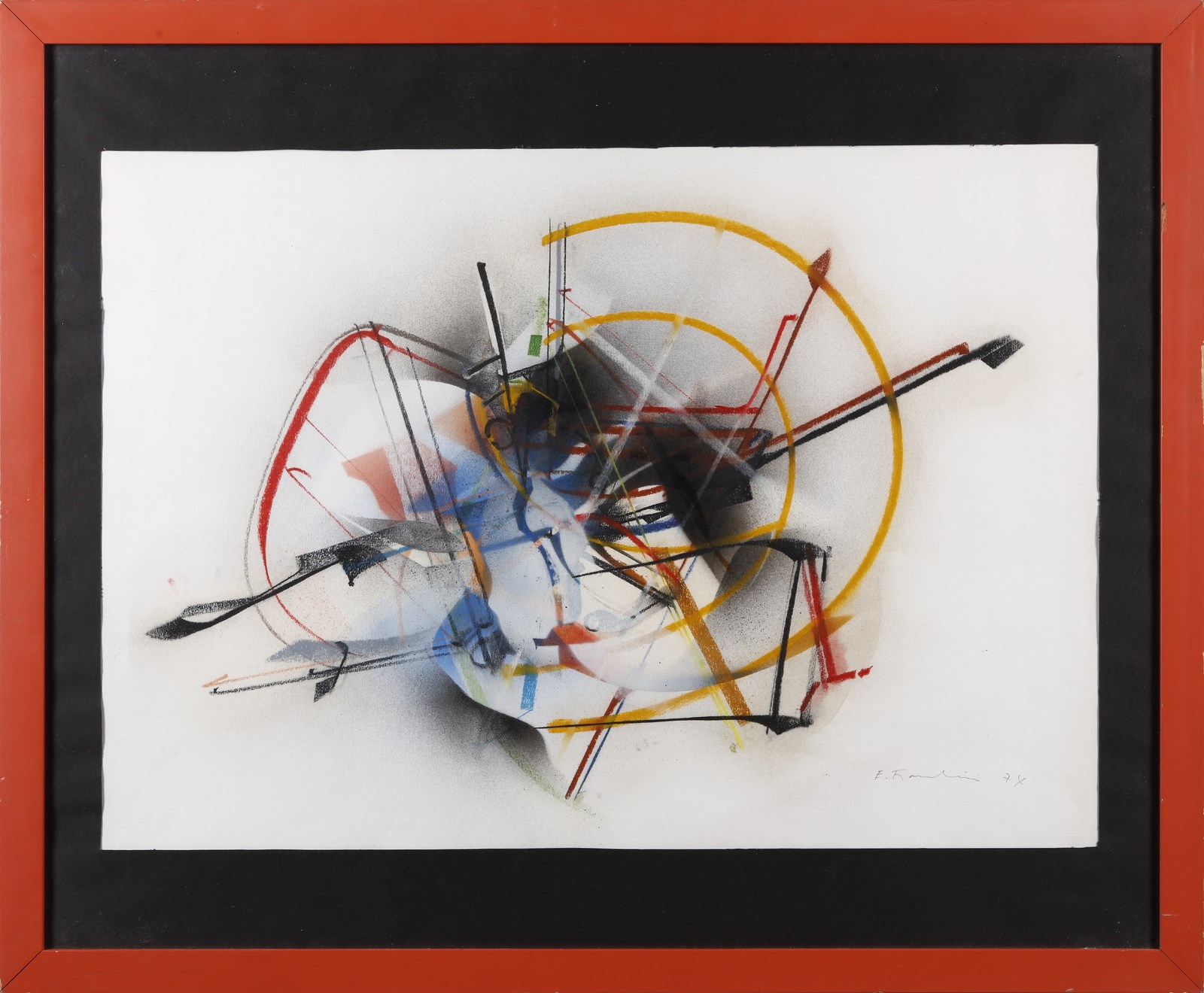 FRANCESCHINI EDOARDO (1928 - 2006) Senza titolo. 1974. Tecnica mista su cartoncino. Cm 70,00 x 50,00. Firma e anno in basso a destra. Cornice presente