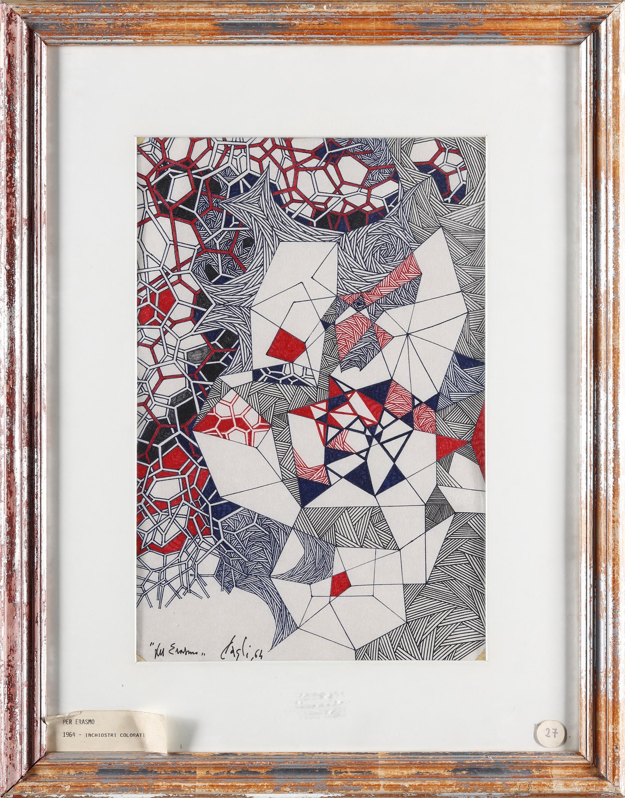 CAGLI CORRADO (1910 - 1976) Per Erasmo. 1964. Inchiostro su carta. Cm 29,00 x 43,00. Titolo, firma e anno in basso a sinistra. Pubblicazione: Cagli - La collezione Ebe Cagli Seidenberg a cura di Giorgio di Genova, Edizioni Bora, pag. 139, tav. 164. Lievi difetti. Cornice presente