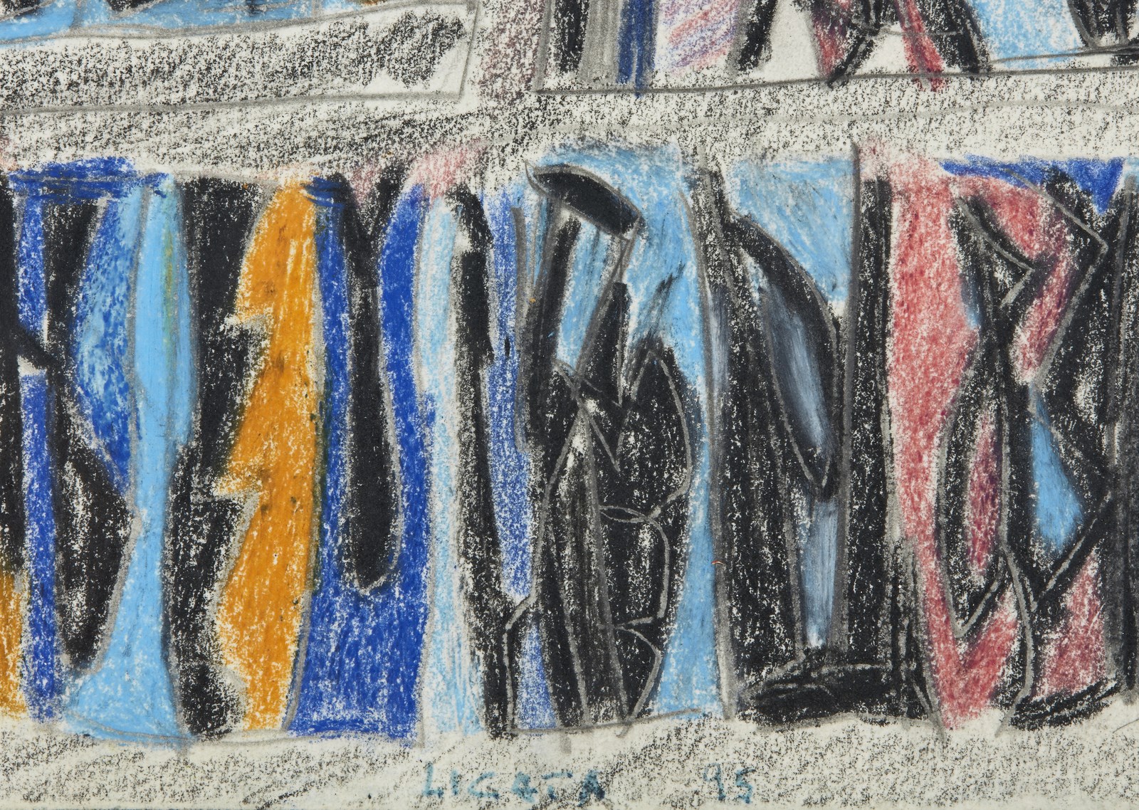 LICATA RICCARDO (1929 - 2014) Senza titolo. 1995. Carta incollata su tela. Cm 24,00 x 18,00. Firma e anno in basso al centro. Opera archiviata presso lo Studio d'arte Granzotto, Sacile, come da documentazione fotografica allegata all'opera riportante il relativo numero d'inventario. Cornice presente