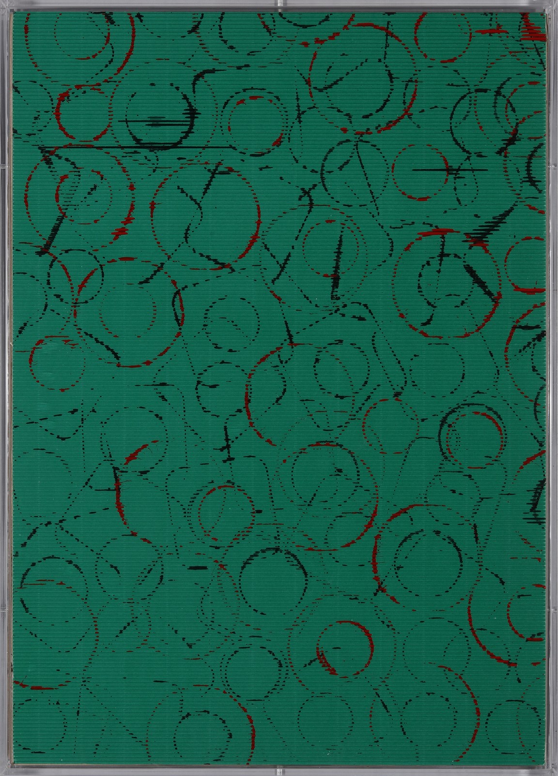 MASI PAOLO (n. 1933) Senza titolo. Acrilico su cartone. Cm 50,00 x 70,00. Autentica dell'artista su fotografia. Entro teca di plexiglass. Cornice presente