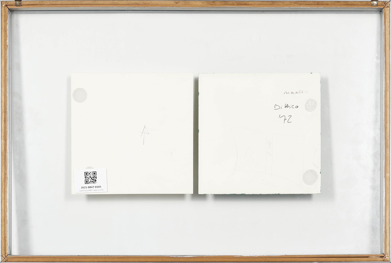 MORALES CARMEN GLORIA (n. 1942) Dittico. 1972. Tecnica mista su carta. Cm 19,50 x 41,00. Al retro titolo, firma e anno. Dimensione singola opere: 19.5x19.5 cm. Cornice presente