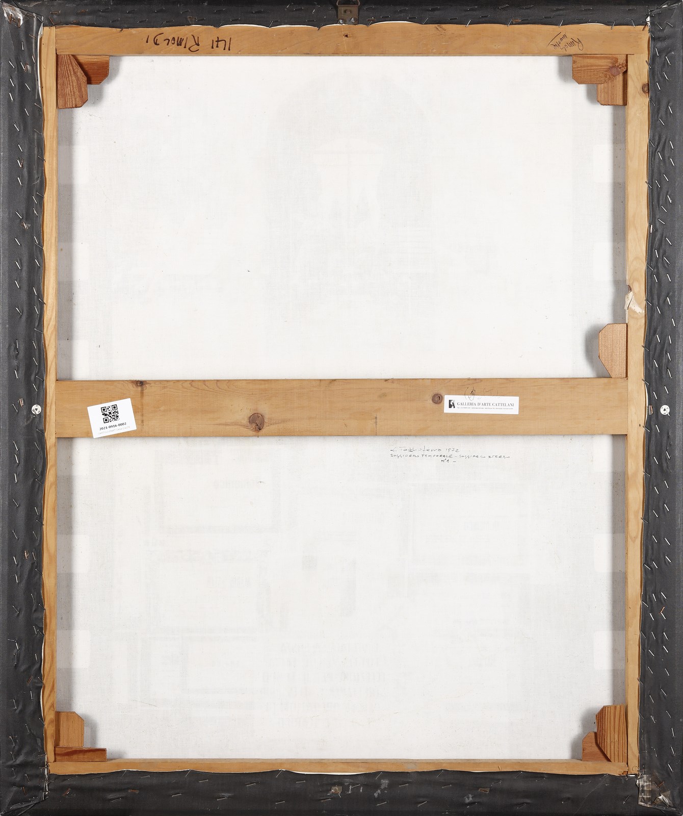 TAGLIAFERRO ALDO (1936 - 2009) Soggiorno temporale, soggiorno eterno. 1972. Tela emulsionata. Cm 83,00 x 100,00. Al retro titolo, firma, anno e cartiglio Galleria d'arte Cattellani.
