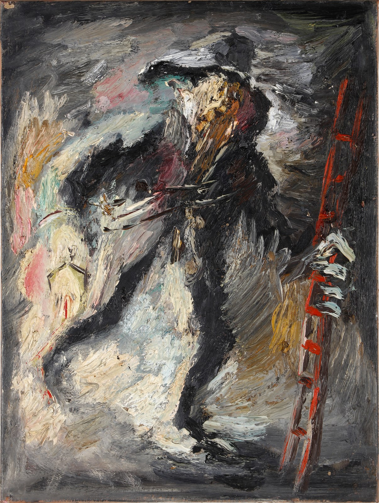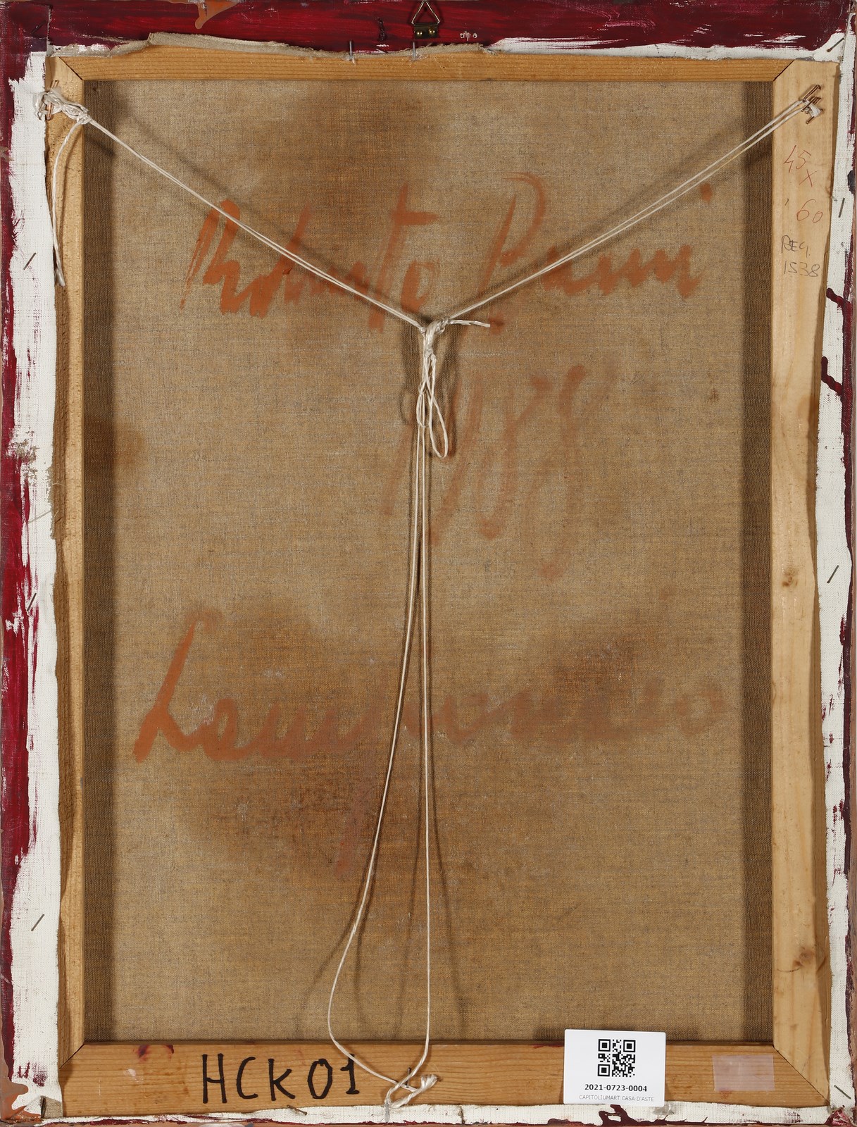 BARNI ROBERTO (n. 1939) Lampionaio. 1988. Olio su tela . Cm 45,00 x 60,00. Al retro titolo, firma e anno. Autentica dell'artista su fotografia (titolo errato). Difetti.