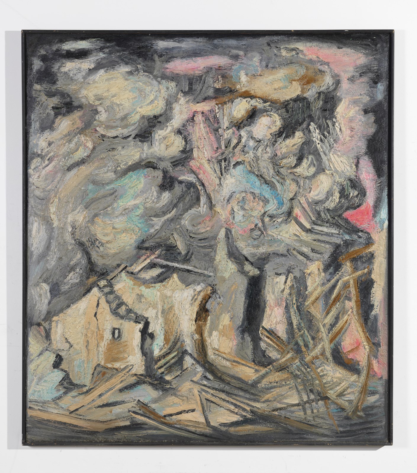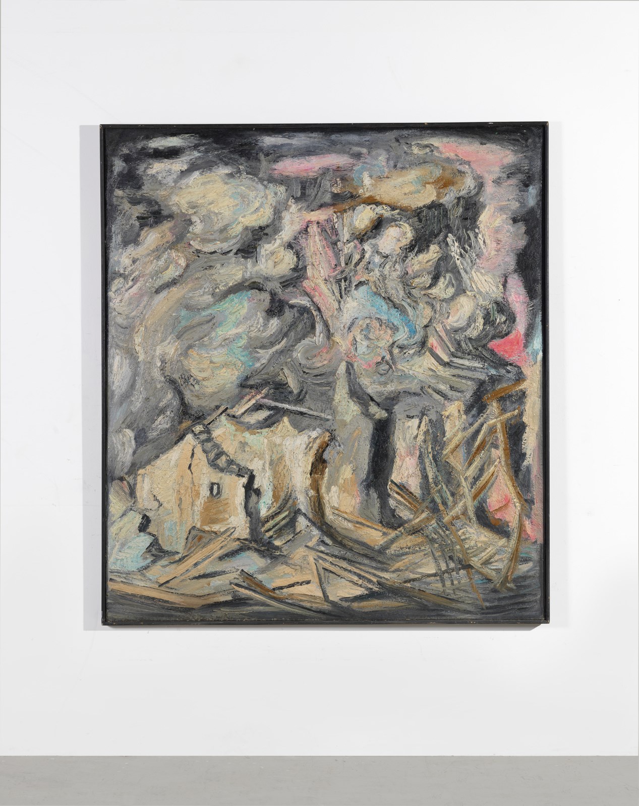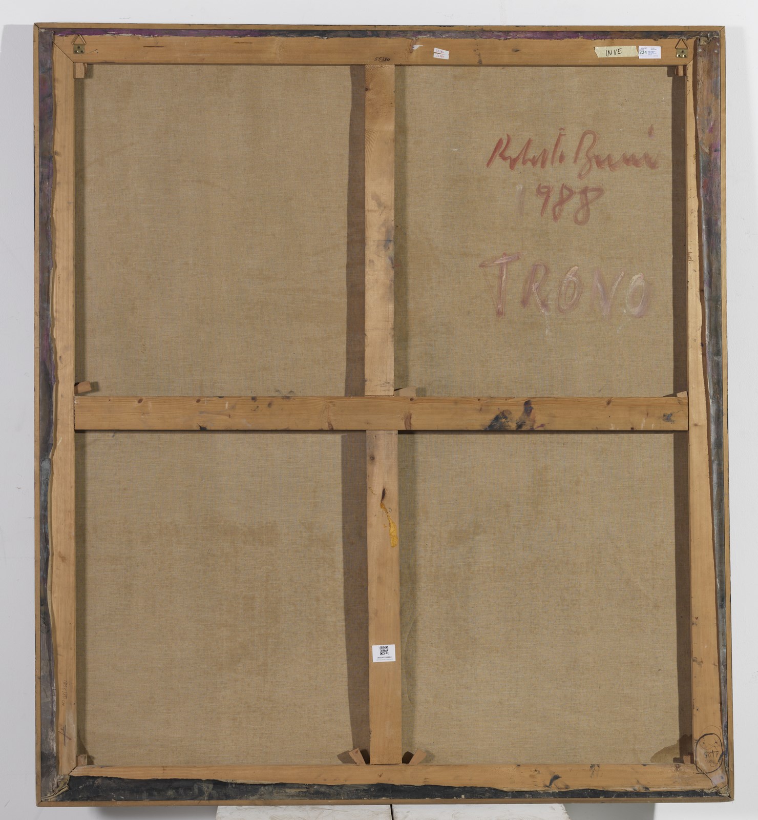 BARNI ROBERTO (n. 1939) Trono. 1988. Olio su tela . Cm 160,00 x 180,00. Al retro titolo, firma e anno. Autentica dell'artista su fotografia.