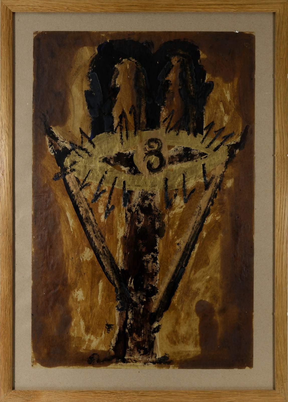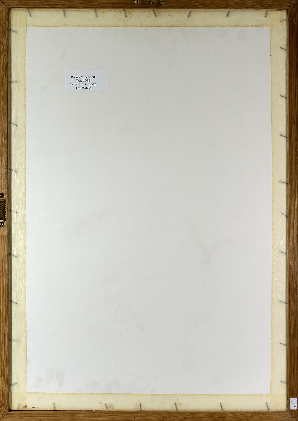 CECCOBELLI BRUNO (n. 1952) M3. 1986. Tecnica mista su carta. Cm 39,00 x 60,00. Certificato della galleria Weber & Weber, Torino. Autentica dell'artista su fotografia riportante il relativo numero d'inventario. Cornice presente